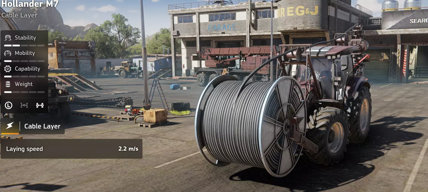 价格:29,000 解锁条件:余波之后 说明:没什么特别的,就是一台电缆敷设车。购买它能为你节省一些时间并带来便利,但29,000的价格是否值得则取决于你。就我个人而言,有足够多的电力基础设施任务,所以对我来说是值得的。 优点:唯一的电缆敷设车 具备相当不错的越野能力 履带式 缺点:本质上比较小众? 生锈版本能完成同样的工作,只是在地图上移动较慢 特殊设备:【Pike】Step 39331