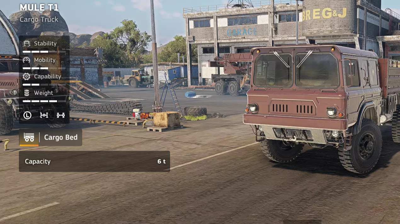 价格:21,000 解锁条件:【Incommunicado】 备注:这是一款容易被忽视的车型,不过我对其性价比有所疑问。货箱表现平平,也没有穆勒T1起重机和运输卡车那样的实用性。话虽如此,它可能是早期游戏中最出色的越野货运卡车,越野性能非常优秀。值得一提的是,尝试装载货物时,转弯半径会很让人头疼。 优点: - 出色的越野能力 - 速度相当快 - 抗超载能力强 缺点: - 极差的转弯半径 - 货箱尺寸与价格不符,表现平平 货物:【Kronenwerk L-34货运卡车】