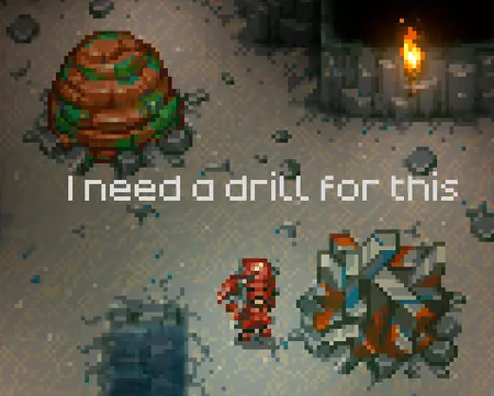 在你的探索过程中,你会发现这些无法用镐子开采的矿石节点。你需要使用猩红钻机才能从中获取矿石。