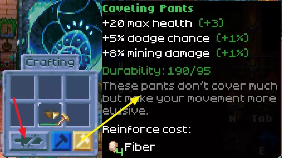 最终你将能够实现自动开采矿物并进行熔炼的功能。 阅读【农场】部分以了解更多关于钻机和电子设备的信息。 如何填补坑洞:在工作台制作名为“bridge”的物品(可以是木桥),你也可以使用铲子在其他地方挖一个坑,以获得名为“ground”的物品。将“ground”或“bridge”装备在手中,点击坑洞即可将其填补。修理与强化台 修理与强化台(Salvage and Repair Station)是最重要的功能台之一,主要有以下三个功能: 1)修理装备(Repair) 你的武器、工具和盔甲在使用过程中会损耗 durability(耐久度),将鼠标光标移到装备上即可查看当前耐久度。当耐久度降为零时,装备会损坏。 你可以使用 Scrap Parts(废料零件)修理任何装备,但前提是必须有修理与强化台。因此,随身携带一个修理与强化台和一组废料零件非常重要,这样无论你在哪里,都可以将修理台放置在地面上,随时修理或强化你的装备。2)强化你的装备(Reinforce) 使用特定材料(取决于装备类型)可以强化装备并为其附加额外属性。