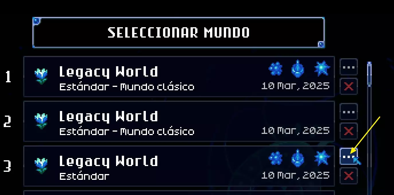 在世界列表中,点击三个点。