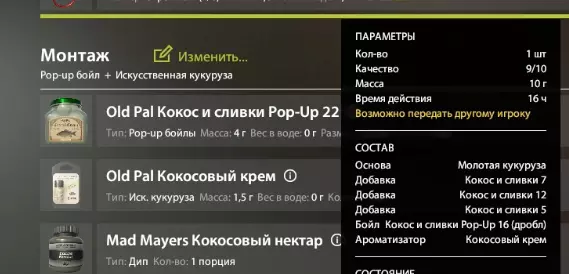 ★Можно ли перекормить точку?Допустим используя изложенный выше способ корма сразу 3 методами. Нет, перекормить точку нельзя, во всяком случае никто не доказал, что клёв будет хуже или как-то в принципе отличаться. Ответ разработчиков по этому поводу - это то, что смеси суммируются до определенного максимума, а далее новый прикорм не учитывается до истечения срока старого. максимум не изведан. ★Разные прикормы не суммируютсяДопустим стандартный прикорм с составом на "Карася" не будет суммироваться с другим прикормом с составом на "карпа". При использовании разных по составу прикормок - будет преобладать та, которая была заброшена последней. Не имеет смысла так же доставка прикорма с разными составом и разными способами. Допустим при использовании пва на карпа и кормушки на карася - действовать будет прикорм, который вошел в воду последним. ★Перезаход или переход по водоемам убирает весь закорм с точкиЕсли вы закормили точку, вылетели из игры и перезашли, то точку необходимо закормить по новой. ★Большая фракция приманивает большую рыбу.Более крупный бойл будет в прикорме будет приманивать более крупную рыбу. За некоторой оговоркой - Добавляя крупные бойлы, вы не получите гарантировано рыбу больших размеров, но вы имеете больший шанс на привлечение такой рыбы к месту вашей ловли. Чем разнообразнее прикорм в размерном плане тем большую и разнообразную стаю рыбы вы собираете на точке. Как кормить и как кормлю я Инфа от разрабов:Для приготовления прикормки вы можете воспользоваться готовыми рецептами смесей из раздела крафтинга. Эти рецепты не являются идеальными. Лучших результатов можно достичь экспериментируя и подбирая компоненты смесей. Если в привычный рацион рыбы, которую вы ловите, входит бойл или пеллетс, то использование этих компонентов в качестве прикорма может дать хороший результат. Бойлы или пеллетс могут входить в состав смесей, либо использоваться самостоятельно, причем как целиком, так и раздробленные на фракции разного размера. Используйте смесь цельных и молотых бойлов. Чем разнообразнее состав смести, тем больше рыбы будет привлечено к месту лова. Для полноценного начального прикармливания достаточно в среднем 10 шаров либо 1-2 ракеты с прикормкой. Увеличивайте количество прикорма, если вы нацелены ловить крупную рыбу, например карпа. В случае использования в качестве прикорма бойлов и пеллетса, не входящих в состав смесей, достаточно 5 зарядов рогатки или кобры. По окончании срока действия прикормки повторите процедуру прикармливания. 1.Прикормка сухой смесью с помощью ракеты. Приготовьте сухую смесь, используя прикормочный пеллетс трех размеров, например, 3, 7 и 12 мм. Вкус пеллетса выбирается в зависимости от предпочтений рыбы на данном водоеме. Для доставки прикормки воспользуйтесь SPOMB-ракетой. Данная смесь содержит крупные фракции и ракета такого типа позволит доставить их с минимальным разбросом. Для полноценного прикармливания достаточно 2-3 ракеты среднего размера или 1-2 большого. Через 15-20 часов повторите прикармливание. 2.Прикормка цельными бойлами. Используйте бойлы среднего размера, например, 15 мм. Вкус бойла выбирается в зависимости от предпочтений рыбы на данном водоеме. Выберите способ доставки прикормки: рогатка, кобра или ПВА-стрингер. Для полноценного прикармливания достаточно 4-5 выст
