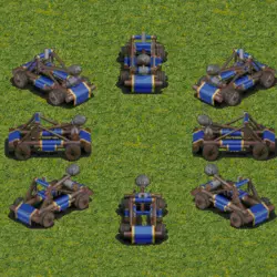 投石机 用于摧毁建筑。专业玩家也会用它来对付单位。 造价高昂且移动缓慢,必须时刻有部队守护,因为即使在简单难度下,农民也能摧毁它们。在围攻敌人时非常好用。 弱点:骑兵。 有效攻击目标:建筑、塔楼、城墙、船只。