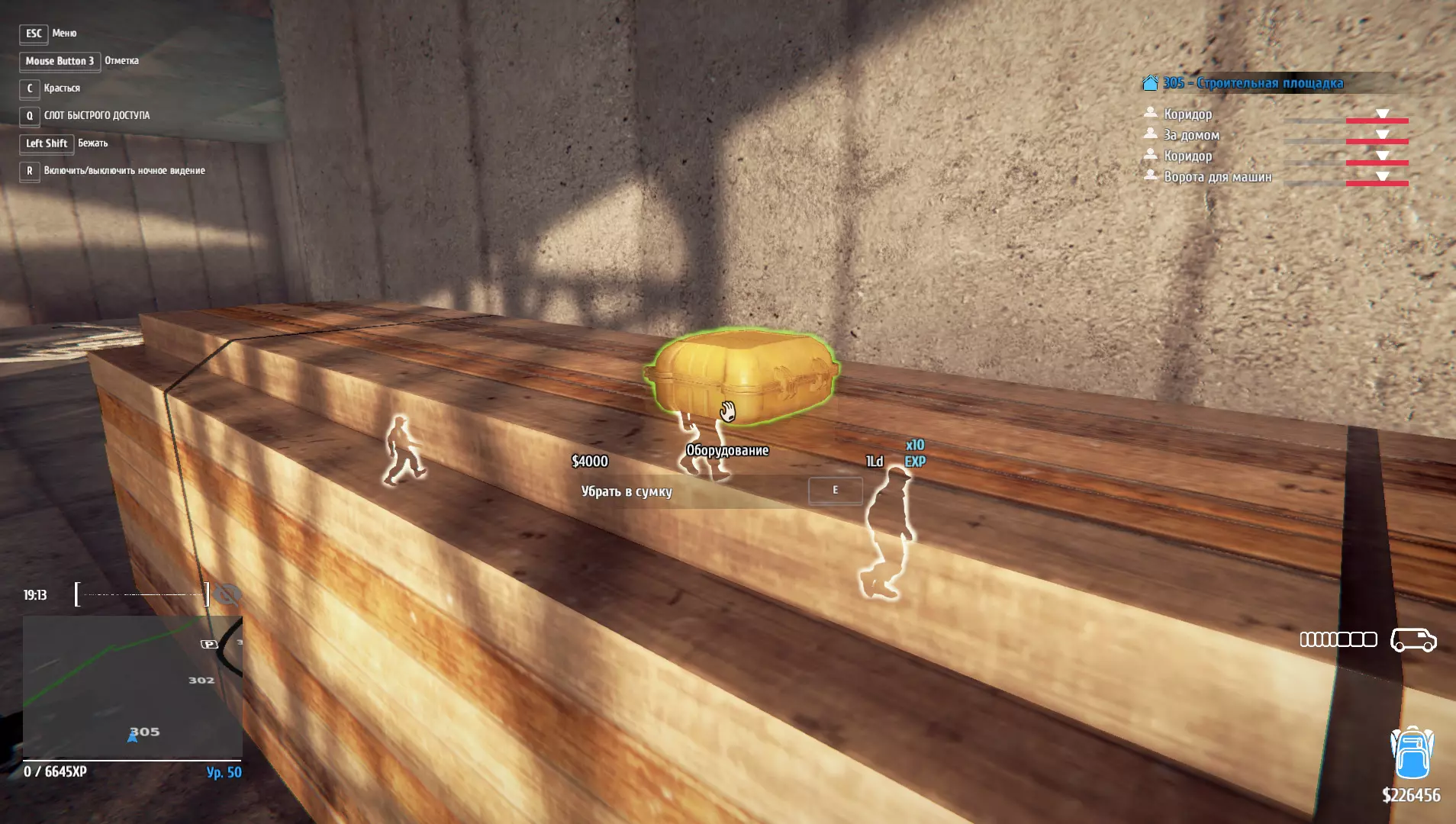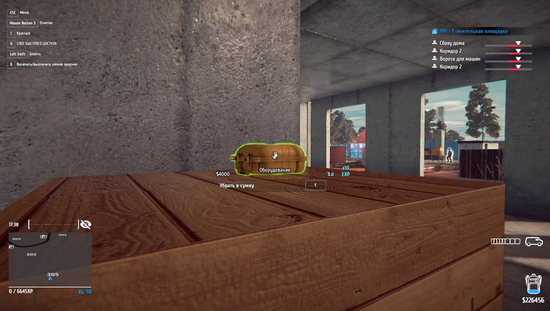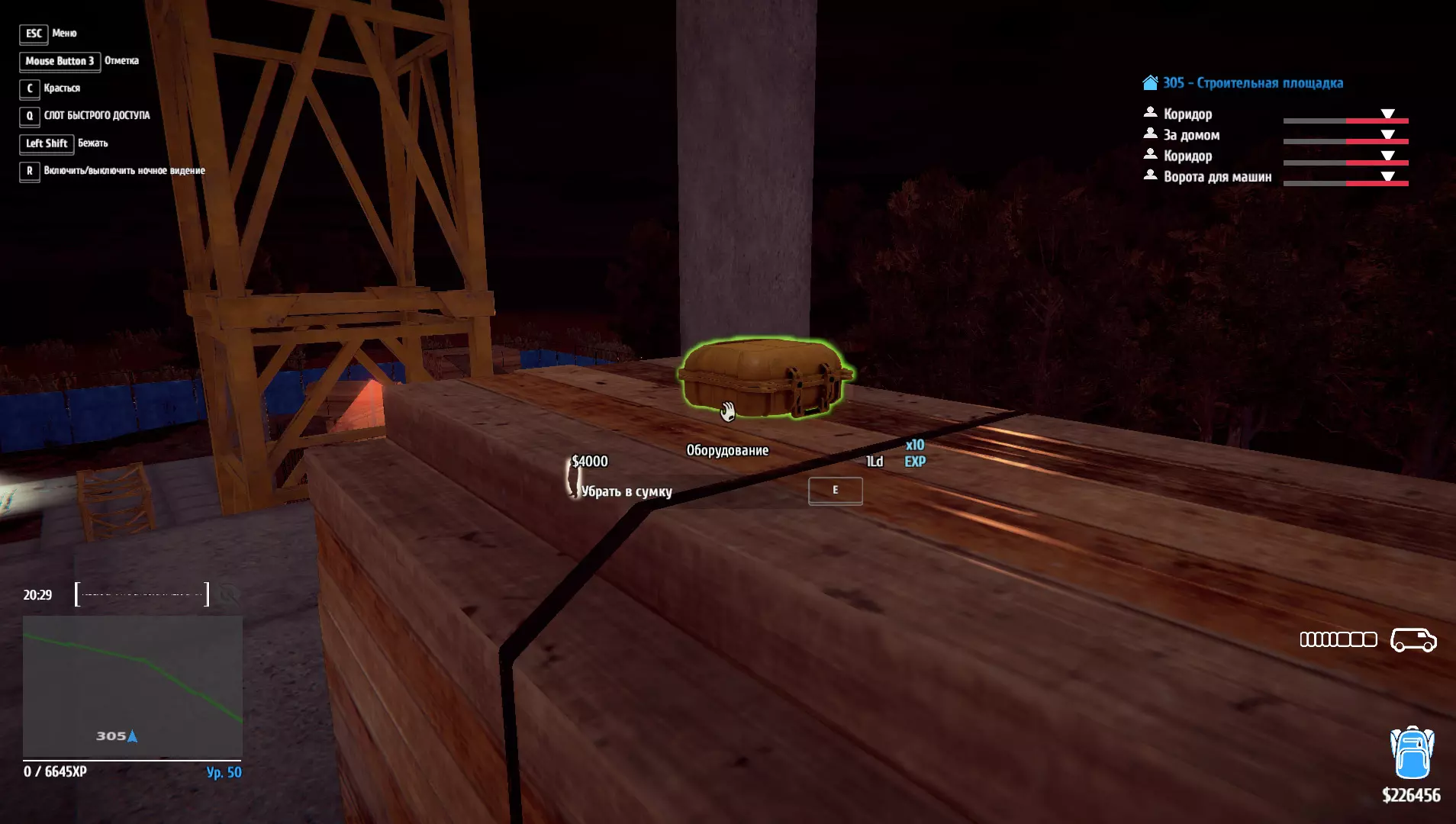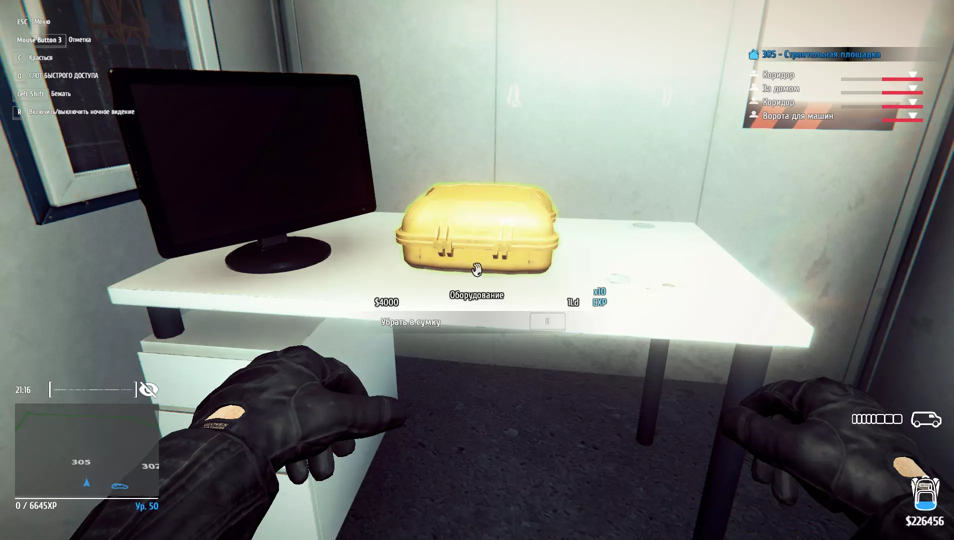 装备齐全:从建筑工地偷走所有黄色装备箱。 偷走所有黄色装备箱。 1.位于入口处的警卫岗亭。