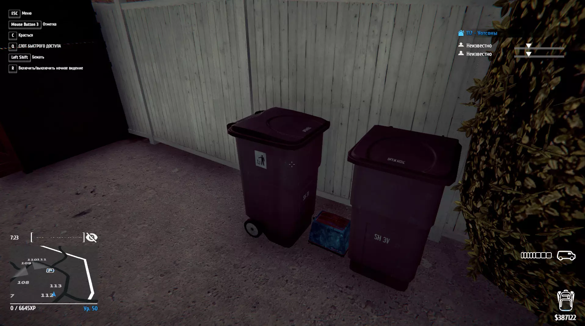 房屋内位置: 102 - 儿童房 103 - 一楼办公室,可从窗户看到 104 - 顶楼,阳台旁的大厅内 105 - 地下室,其中一个房间的桌子下方(隐藏最深的桶) 107 - 后院 108 - 二楼办公室 112 - 卧室的保险箱上 113 - 儿童房