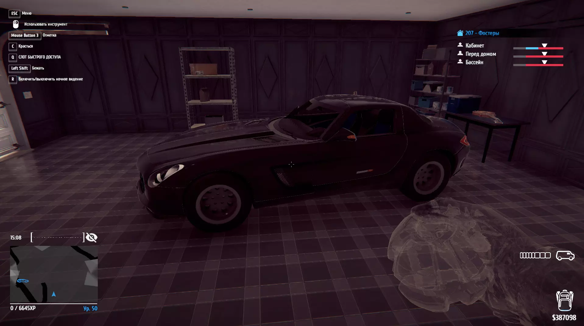 火神幽灵。剧情车辆。需要三级盗窃技能。大厅内靠近钢琴处有开门按钮。