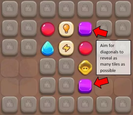 尽量揭开尽可能多的方块,我建议优先处理角落、对角线或孤立的方块。 最佳组合包括在使用连锁方块前揭开整个棋盘。 同时留意爆炸是否会触发连锁,因为使用爆炸的成本更低! 策略1:尽快降低关卡 在这个策略中,你要尽快利用每级3%的属性增益提升。