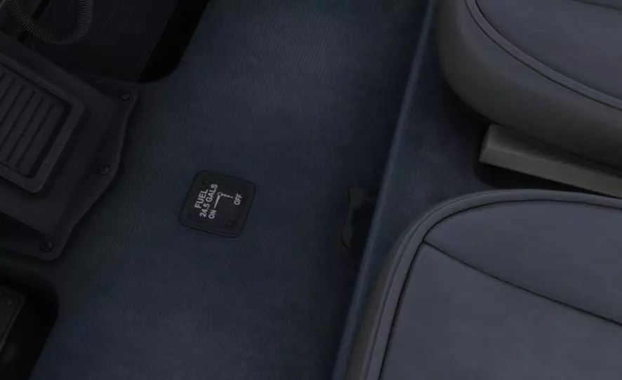 驾驶舱地板上座椅之间的区域 1:燃油选择阀——控制决定燃油能否进入发动机的阀门。当设置为关闭位置(手柄指向上方)时,燃油从油箱流向发动机的通路被切断。设置为开启时,燃油可流向发动机并进行燃烧。发动机启动前需将其设为开启,正常情况下,在飞行结束关闭飞机前不会再触碰此阀门。