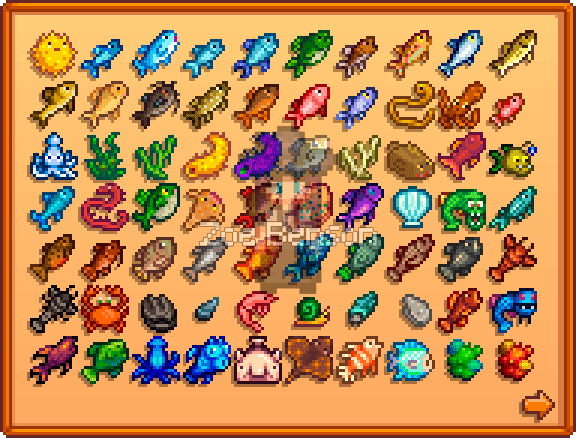 【捕获的鱼类】 要达成此成就,我们需要完成“鱼类”物品栏的所有部分。