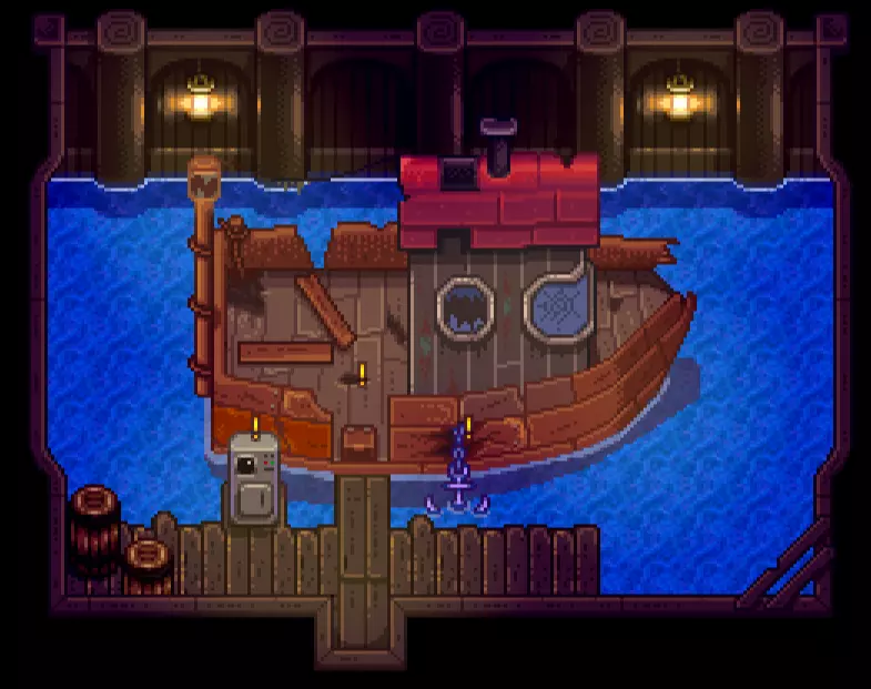 遥远的彼岸抵达姜岛。完成市政中心的所有地块后,威利会通过邮件向我们发送一份前往他商店后巷的邀请,在那里我们会发现一艘状况不佳的船,需要收集以下材料进行修复: