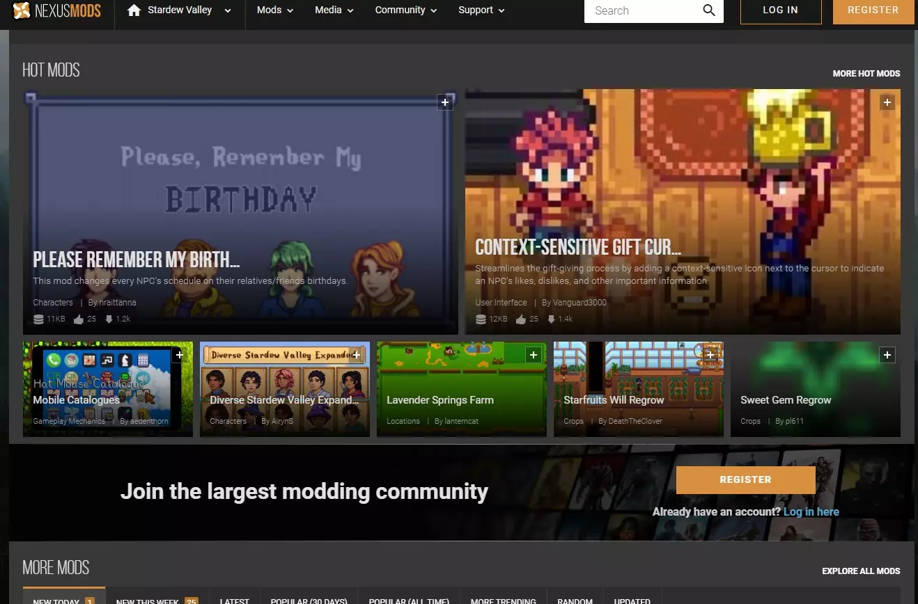 然后点击确认。注意:对于大多数人来说,这是《星露谷物语》在Steam中的默认文件夹路径,不过我需要修改它,因为我的Steam安装在D盘。 如何安装模组:你只需前往路径C: Program Files (x86) Steam steamapps common Stardew Valley Mods下的Mods文件夹,然后将你下载的模组粘贴到那里。 我下载部分模组的网站是NexusMods。