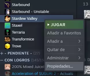 接下来是通过SMAPI配置我们从Steam启动星露谷物语的路径。打开Steam库,找到星露谷物语,右键点击并进入属性。