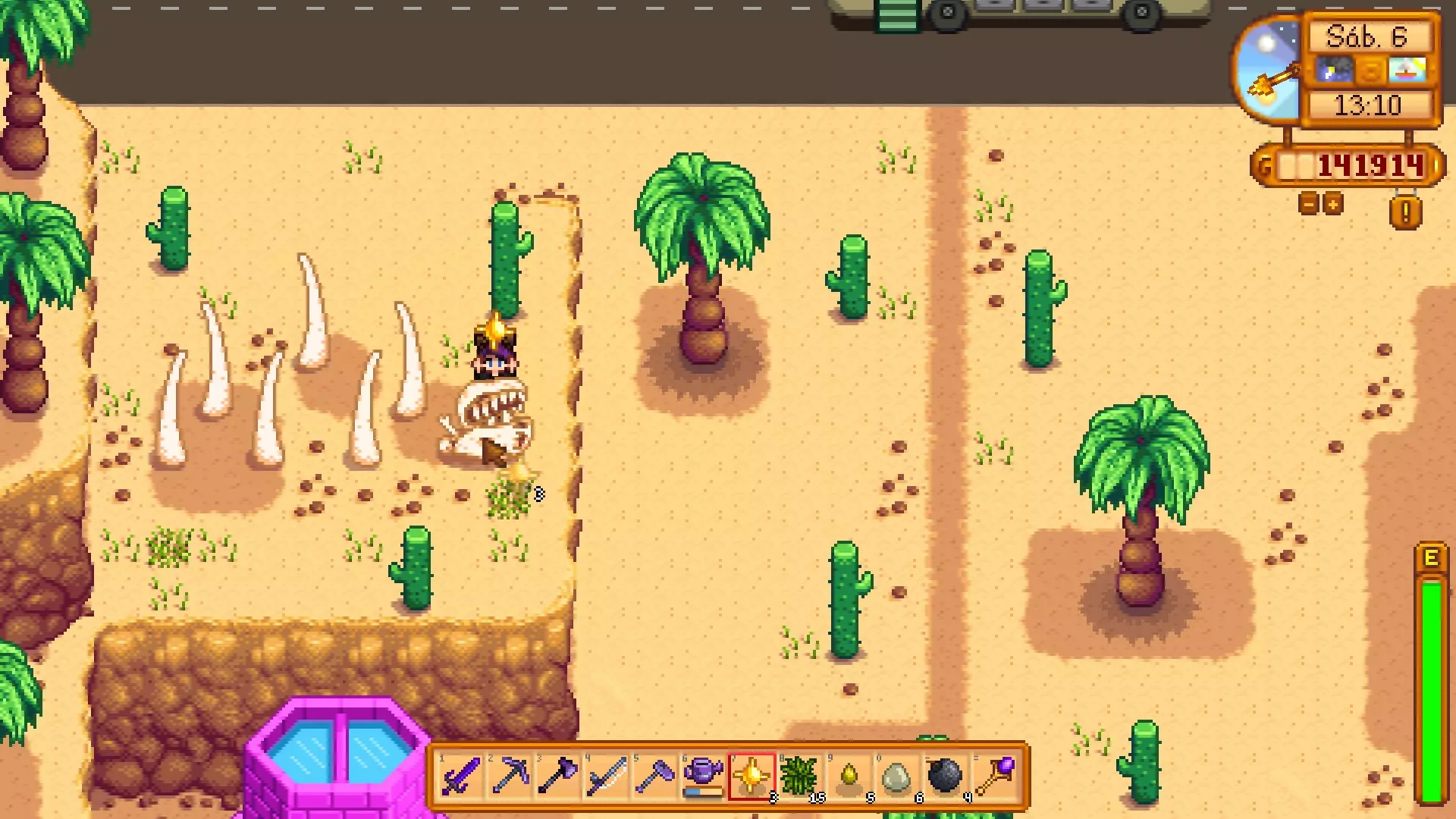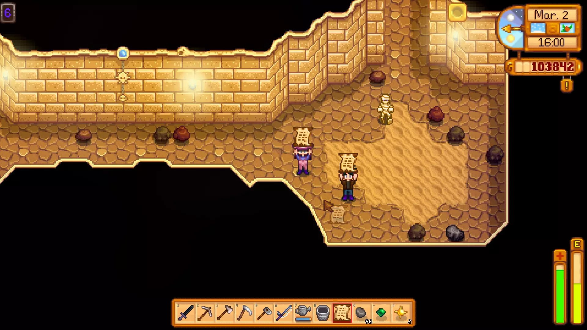 前往卡利科沙漠,在地图东南部的长椅西南区域使用锄头,挖掘出一个奇怪的玩偶(黄色)。秘密笔记#19