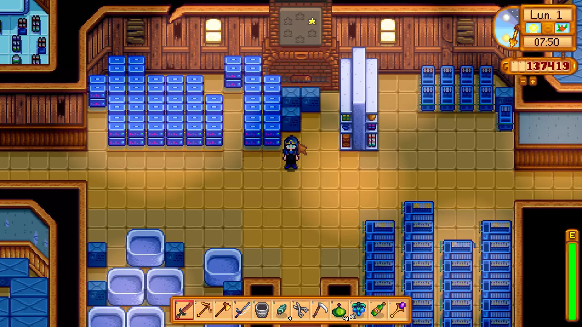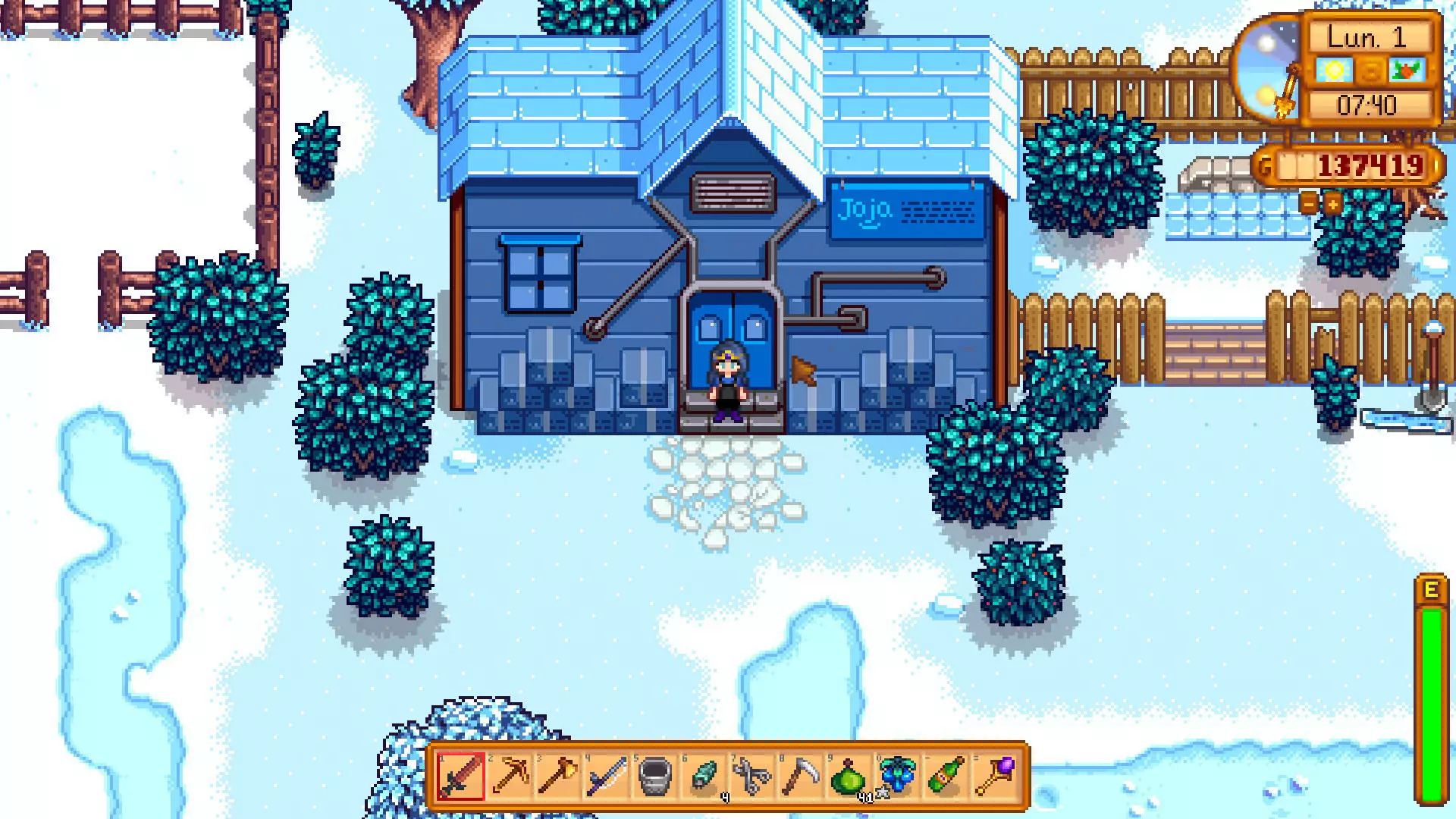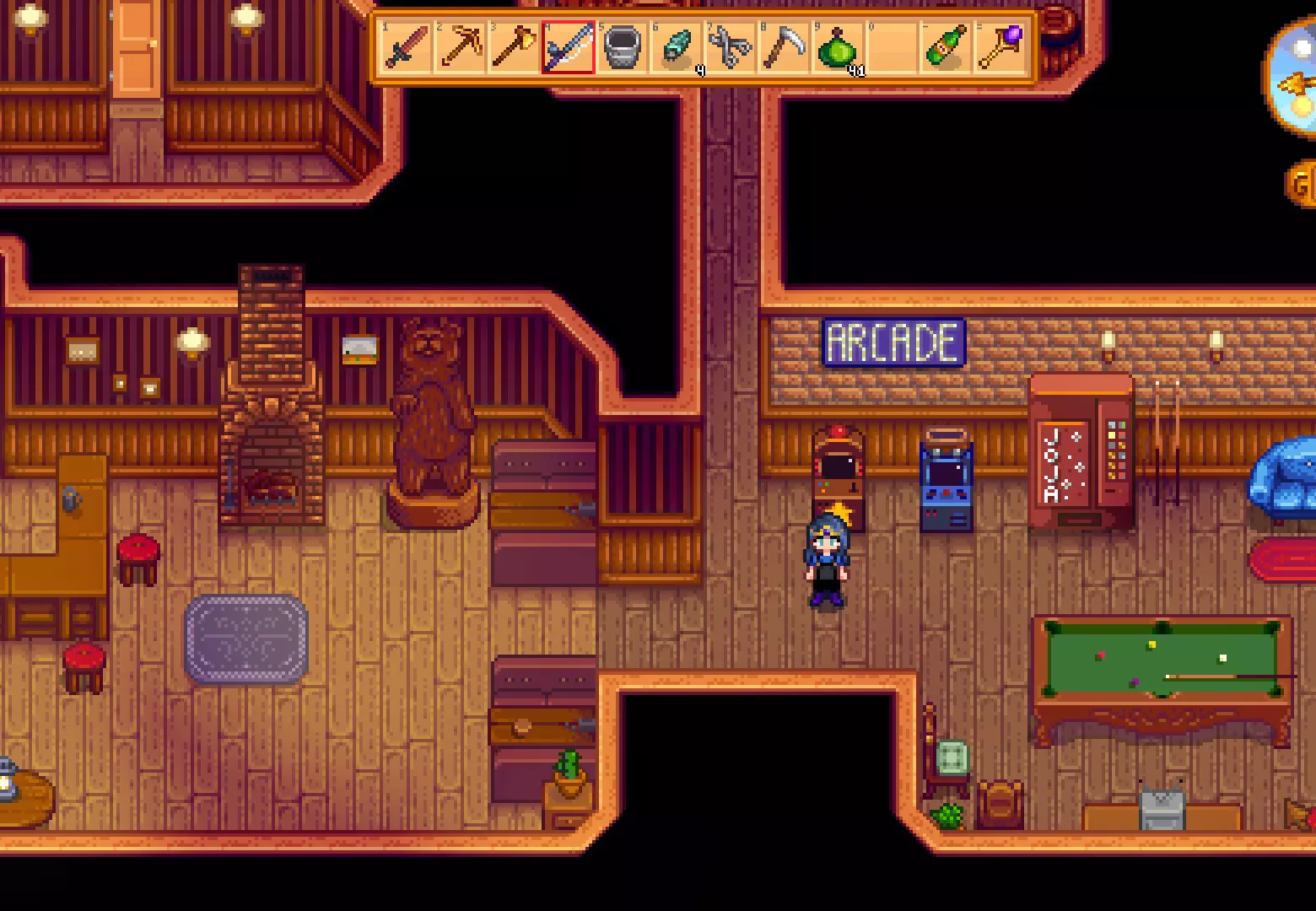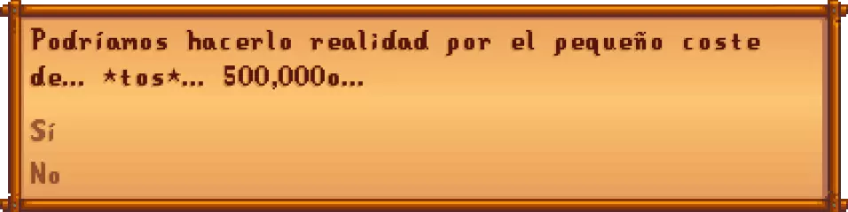 1份鱼子酱 完成后,第二天它将在铁匠铺北边原先是废弃的Joja超市处开放。 - 另一方面,如果选择了Joja超市路线,购买所有升级后,我们可以以500,000的价格解锁电影院,与莫里斯交易。