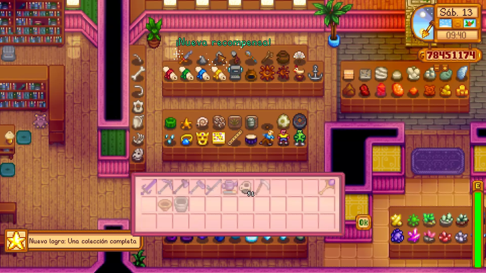 欢迎阅读本指南,这里包含《星露谷物语》的成就、成就获取方法、建议、秘密以及模组安装教程。 由于字数限制,本指南将分为多个部分。 如需查找特定成就: - 按下快捷键Ctrl+F - 在弹出的窗口中输入成就名称。 例如:Desafío secreto 简介 目前游戏中共有49个成就。 大多数成就可以通过推进游戏进程获得,只要你足够谨慎和耐心。 成就将按其类型/获取方式排序。 游戏中的部分成就会提供帽子、饰品等奖励,这些也将包含在本指南中。 更新1.6. 访问指南的新章节! 希望这份指南对你有用且合你心意! 星露谷检查器 - 详细了解你在某些收藏中还缺少什么