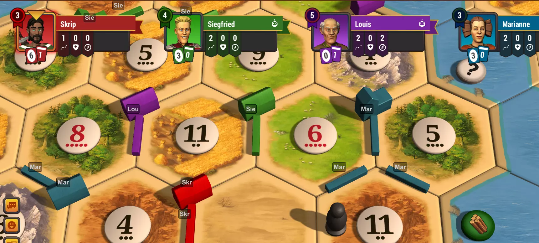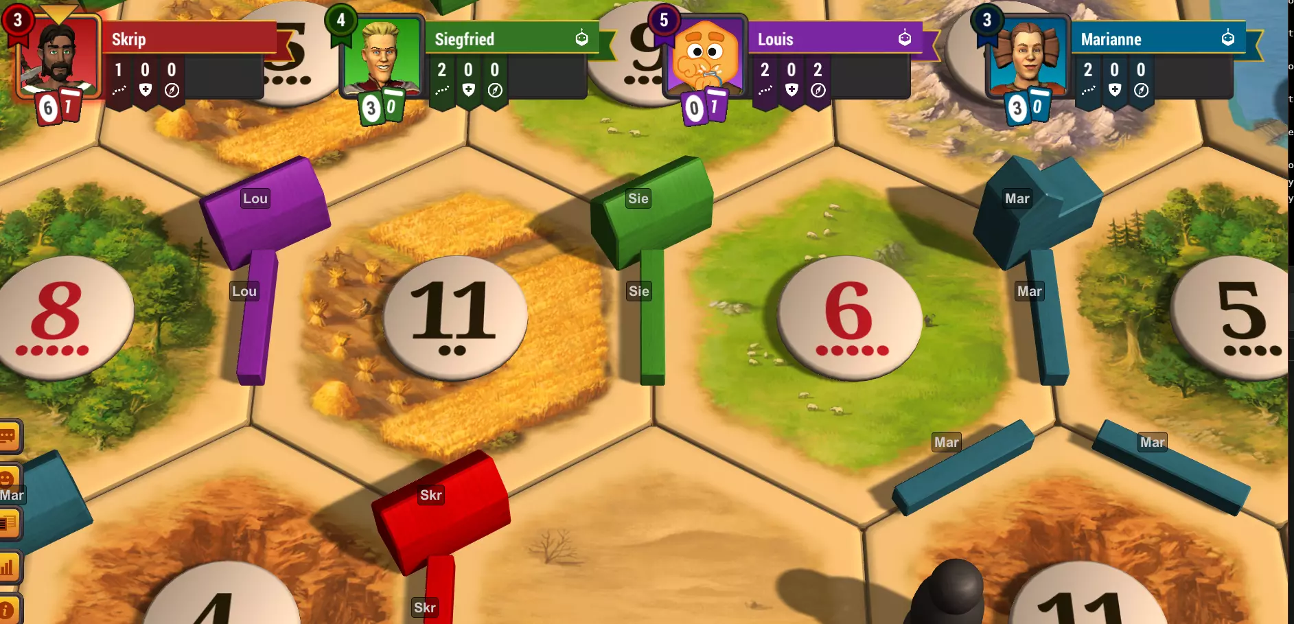 介绍《卡坦岛》宇宙色盲辅助工具,该工具旨在为热门游戏《卡坦岛》宇宙的色盲玩家提升游戏的可访问性和游玩体验。此模组的开发目标是让所有玩家,无论其色觉状况如何,都能更愉快、更便捷地体验《卡坦岛》。 功能: 1. 包含简单的一步式安装流程。模组会在你加入匹配时自动加载。 2. 独特名称缩写:模组会为每位玩家的名字自动生成独特且易读的缩写,至少包含两个字符。这些缩写会显示在棋盘上相应玩家的游戏棋子旁。若出现重复缩写,模组会智能添加额外字符或数字,确保每个缩写保持独特。清晰的棋子识别:通过在游戏棋子旁显示独特的玩家缩写,此模组让色盲玩家能轻松分辨哪些棋子属于哪位玩家,即便在原版游戏颜色难以区分的情况下也能做到。 可自定义字体大小:该模组提供调整显示缩写字体大小的选项,玩家可选择最舒适且易读的大小以获得更好的游戏体验。 可自定义背景:通过可配置的开关启用或禁用标签背景。 可自定义名称缩短:你希望每个标签上显示的最小字符数是多少?例如,如果我的名字是Skrip且此项设置为3,标签上会显示Skr。可自定义标签聚类:标签将根据彼此距离进行聚类,从而减少屏幕上的杂乱感,同时最大化显示各棋子的归属信息。
