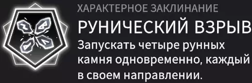 固有法术——【符文爆炸】。你向四个方向释放匕首,每把匕首对一个目标造成伤害。固有技能:魔法师伤害提升(+6%)、最大生命值降低(-300)、元素效果易伤提升;【符文爆炸】的范围增加25%、持续时间增加12%、攻击速度降低8%。角色不错,但生命值被大幅降低这点不太让人满意,好在有伤害提升作为补偿。要获得该角色,你总共需要升级600次。7/10。 - Людвиг