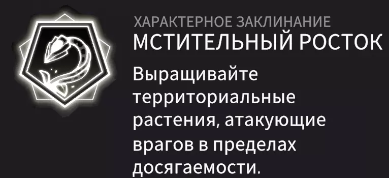 天赋法术 - 复仇嫩芽:冷却时间结束后,向玩家视角方向种下种子,种子会长出植物并对特定半径内的目标造成伤害。 天赋技能: - 法术尺寸/半径增加25% - 复仇嫩芽的伤害等级提升12% - 磁铁效果增强 - 生命值药水效果提升20% - 巫师的拾取半径增加12% 能力/法术