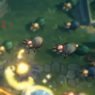 要获取它们,需要打破宝箱并拾取卷轴(拾取有短暂延迟)。卷轴会随时间出现在地图上的特定位置,主要在角落处。每次游戏最多可获得3个卷轴:第一个卷轴可在完成1-2个任务后获取,第二个卷轴可在完成4个任务后获取,最后一个则可在 boss 出现时获取。为了避免像之前部分那样费脑筋,我直接说明每个卷轴的作用: - 减少你对队友造成的进出伤害 - 每次闪避时恢复75点生命值 - 每次升级时恢复100点生命值 - 获得等于你等级的额外护甲,即1级=+1护甲 - 生命值越低,你的速度越快移动速度(最高+9%) 每有1个未使用的重roll,你将获得+1幸运值,最高+10幸运值(重roll是指当你升级时,替换已获得的强化效果的机会)如果您获得+10幸运值后使用了重roll,该幸运值不会重置。 您会根据盟友数量获得额外百分比伤害。 每点防御力可为您提供+1%伤害。 每完成一个任务,您获得的友军复活速度加成百分比提升。 每完成一个任务,您获得+10护甲。 每次复活盟友,经验拾取范围增加一定百分比。 每次复活盟友,盟友复活速度提升。每遇到1个普通强化,暴击伤害提升1% 生命值越低,经验获取加成越高 静止状态下,暴击伤害提升12% 每次造成暴击伤害,可恢复生命值,数值为0此伤害的5% 每次装备法术时,你的元素伤害提升5% 静止时,你的攻击速度降低10% 你拾取的每个经验球有15%的几率为你恢复1点生命值 敌人/怪物 由于怪物没有名字,我会根据它们的外观来称呼它们:D 首先,一些基本信息:大部分敌人造成固定伤害(330点)。另外需要提醒的是,你击杀首领的时间越长,所有怪物造成的伤害就越高,移动速度也越快。我还要补充一点,首领的具体生命值我并不清楚,我会根据自己的感受来大致描述:D 现在来说说虫子: 小型虫子