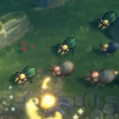 一个相当棘手的敌人。接触伤害为60/190/330(+80),投射物伤害为20/100/220,生命值为450/900/1350。如前所述,这是第一个拥有远程攻击的敌人,需要注意的是,该敌人的火球只会对一个目标造成伤害并立即消失,每4-6秒发射一次。在第一个任务结束后不久出现。 绿色甲虫