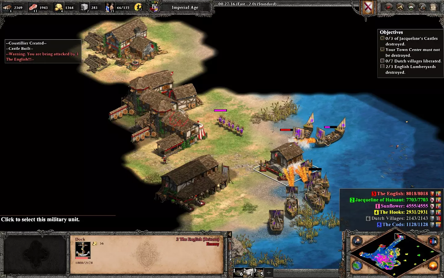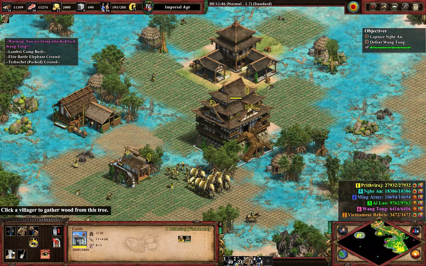 要获得此成就,你必须解放城镇并摧毁所有六个绿色营地,然后才能击败黄色基地。 尽快优先解放城镇,黄色势力会有推进计时器,但时间足够你击败青色和绿色营地。每个城镇会为你提供村民和需要修复的建筑,修复后才能使用并进行建造。西北部的“X”处有城镇中心。 摧毁绿色营地会获得额外资源,但需要额外的军队以确保安全。你可以在发展经济的同时清理它们,只有当你离青色势力太近时,它们才会发动攻击。 击败青色势力是可选的,但建议在对抗黄色势力之前完成。青色和黄色势力都会不断生产单位,因此要准备好以强大的军队发动进攻。弓箭手、骑兵和 trebuchet( trebuchet)的混合部队足以攻破其基地。当计时器结束时,黄色势力会开始向你最近的基地发起进攻。阻止他们并开始反击。记住,黄色势力会永久大量生产单位,因此摧毁他们的建筑是必须的。此时,你拥有足够的资源来快速补充单位以防损失。 【I Am Coming For You, Liu Biao】 这个成就很直接,地图上散布着14座城堡,需要舰队和军队才能全部占领。在占领最后一座城堡之前,不要完成主要目标。你会自动获得该成就。 只需专注于城堡,占领后你将获得相应建筑。大多数城堡用带有 trebuchet( trebuchet)的军队就能轻松攻克。建议优先攻占所有岛屿和沿海的城堡并组建舰队来击败蓝色敌人,因为他们比其他敌人发动的攻击更多。 青色敌人会不断从两侧对你发动攻击。在对抗蓝色敌人的同时,需要建造塔楼和训练军队来保卫你的基地。 当你接到关于海军工程师的任务时,将其派往位于西北方的基地。这将对你下一张地图的战斗有所帮助。 - DLC 9 - 编年史:亚历山大大帝 - 战役 | 编年史:亚历山大大帝