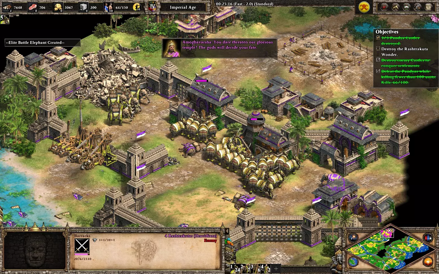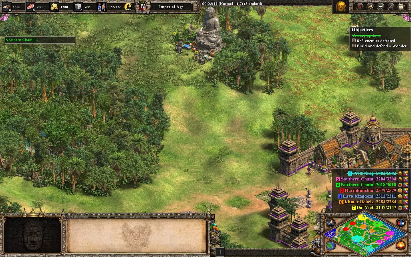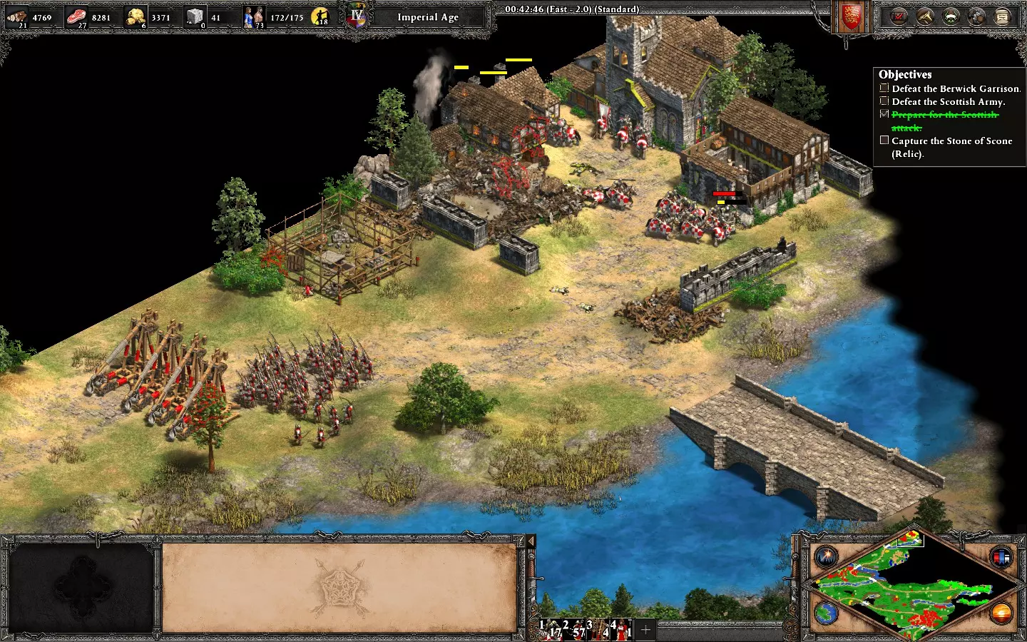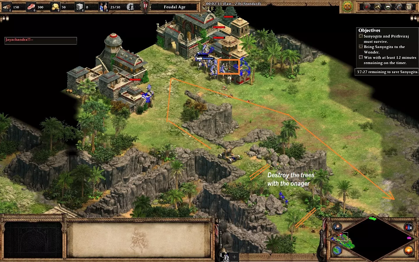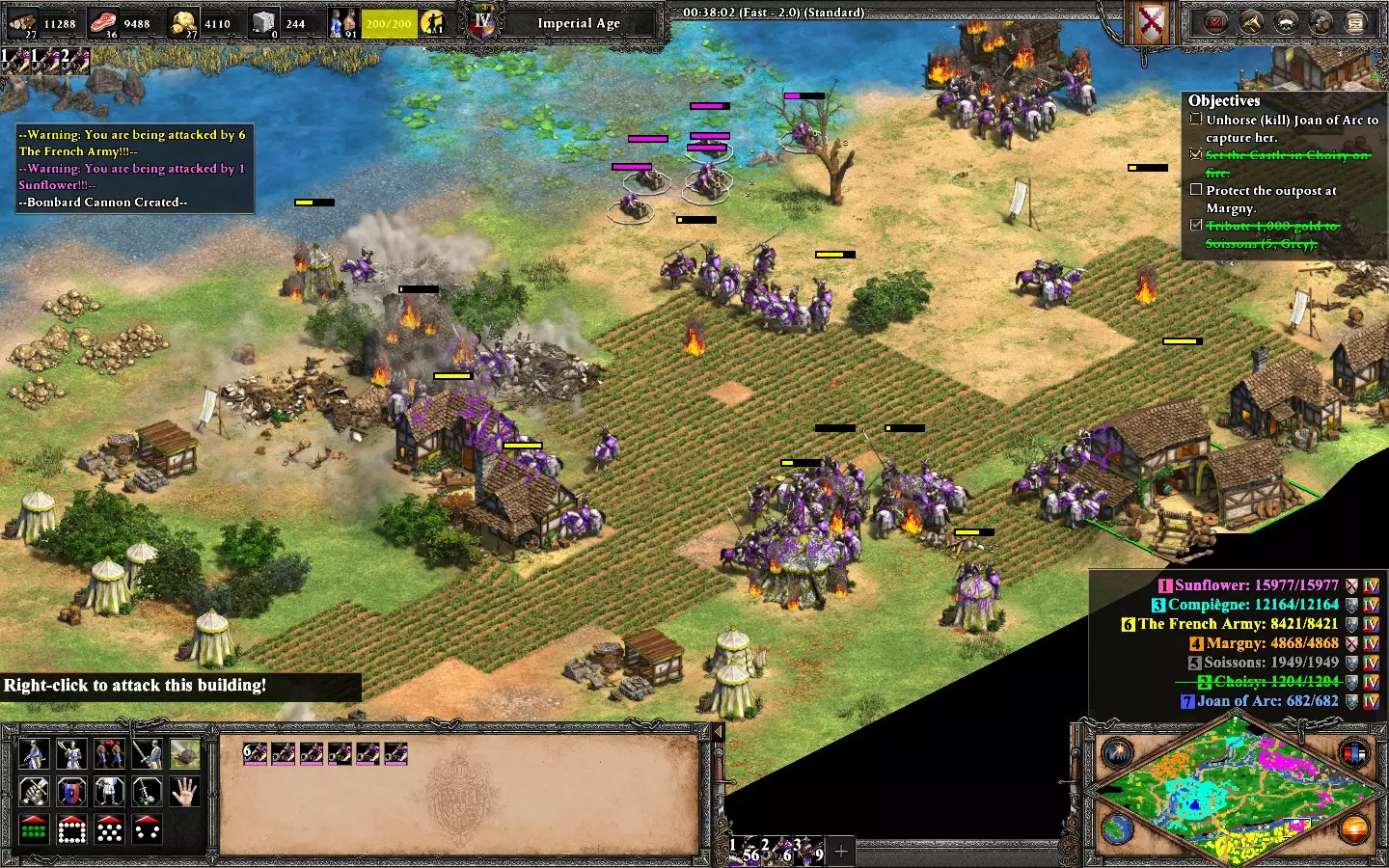 最后,剩下的2个敌人在你的基地西北方向。它们会在大约6分钟后出现。 我建议再训练2名僧侣进行治疗(征服者的伤害很高)。转化他们,你就能完成任务了。