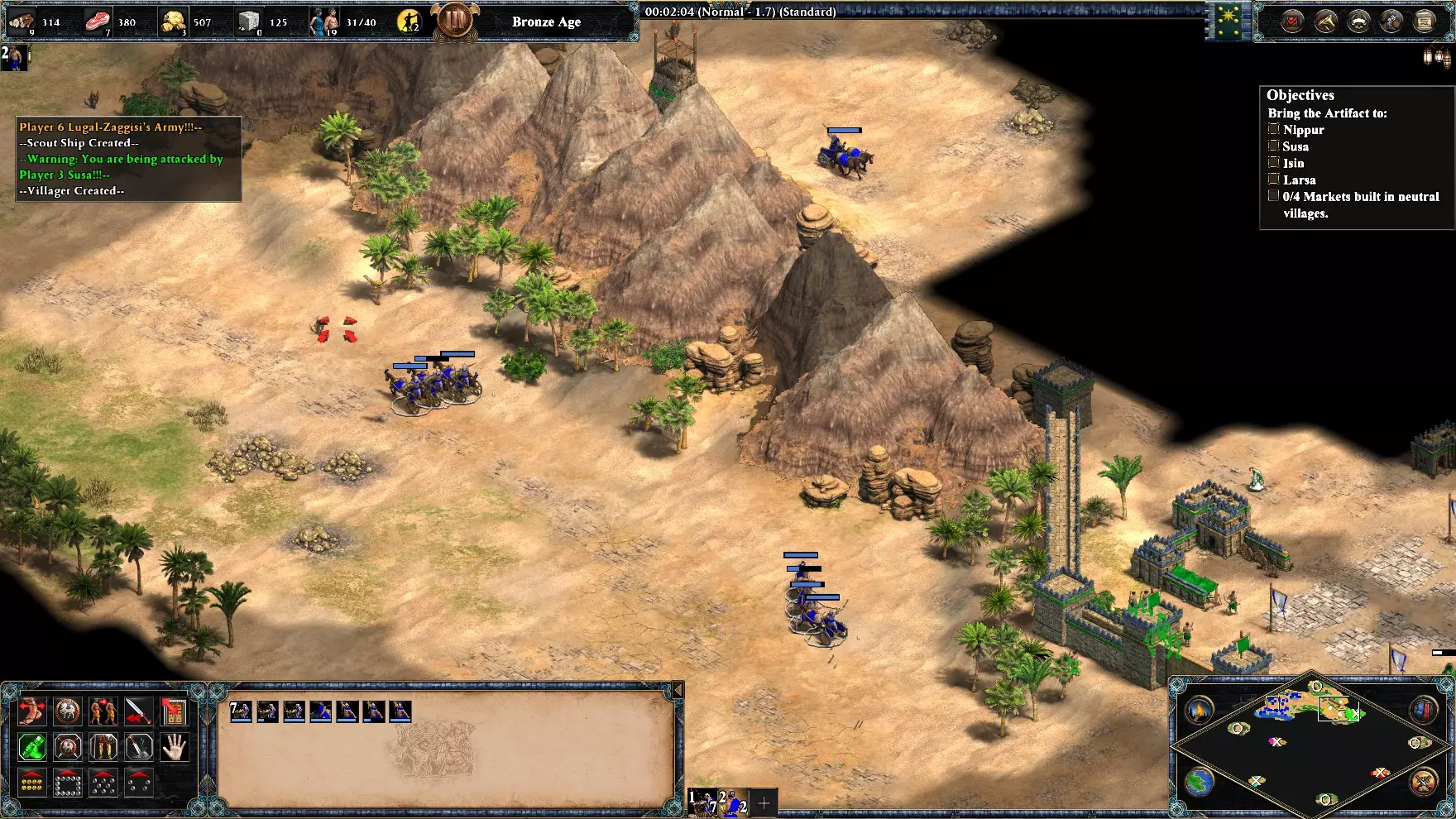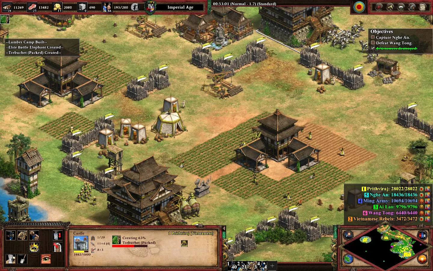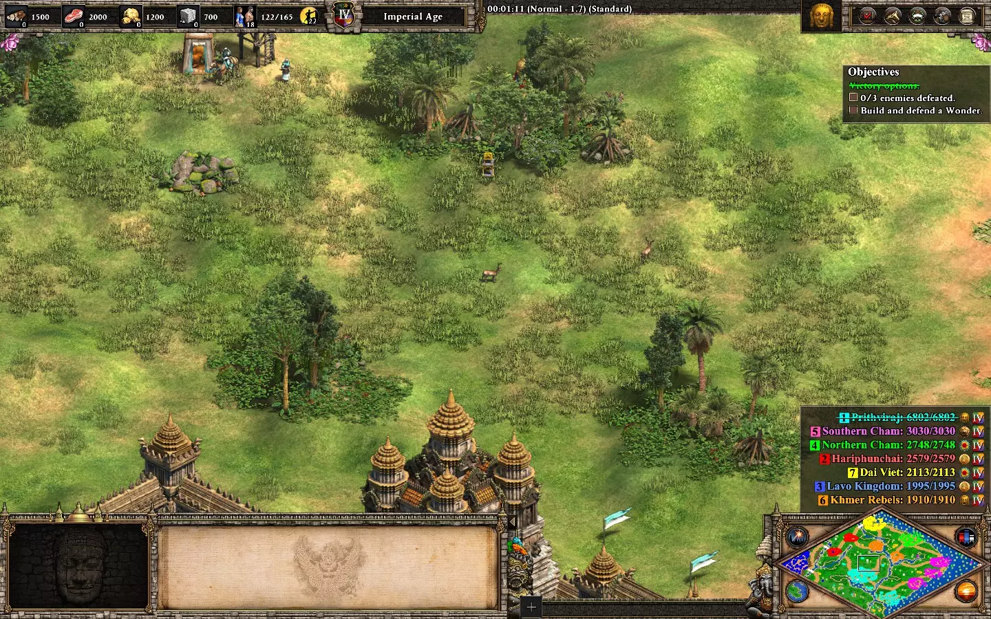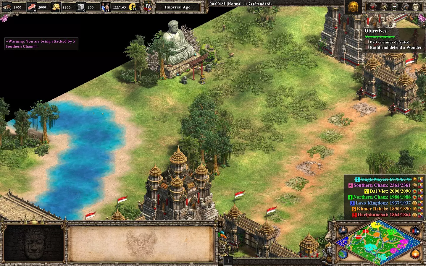 最后,剩下的2个敌人在你的基地西北方向。它们会在大约6分钟后出现。 我建议再训练2名僧侣进行治疗(征服者的伤害很高)。转化他们,你就能完成任务了。
