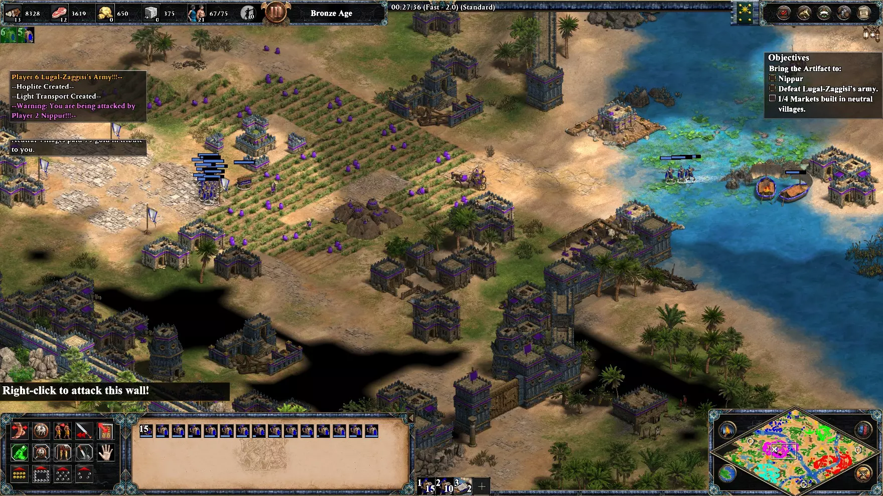 最后一个遗物位于地图东南角的一个小岛上。你应该率领舰队去保护运输船,因为紫色方每次都倾向于用船只攻击你。