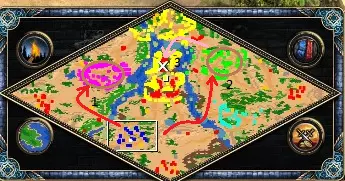 占领第一座城市后,优先发展经济和防御。三兄弟很烦人,会不断派军队攻击你的基地。需要在各个方向建造城墙、军队和城堡,这样才能进行防御,直到你拥有强大的军队开始推进。通过摧毁军事建筑来削弱红色和黄色势力的生产。只要不摧毁他们的主要城镇中心,他们就不会投降。建议在进攻叶城之前这样做,因为他们会改变目标转而攻击你的军队,从而增加攻击绿色势力防御时损失单位的几率。花费1000金币拉拢紫色势力是值得的,这样他们就不会再骚扰你,并且你还能获得他们的地图探索信息。当你用城堡占领该区域后,将获得所有【Ye】建筑,该区域由一支强大的骑兵军队守护。注意,敌人会将目标转向【Ye】。 战役 | 太阳氏族 - 吴