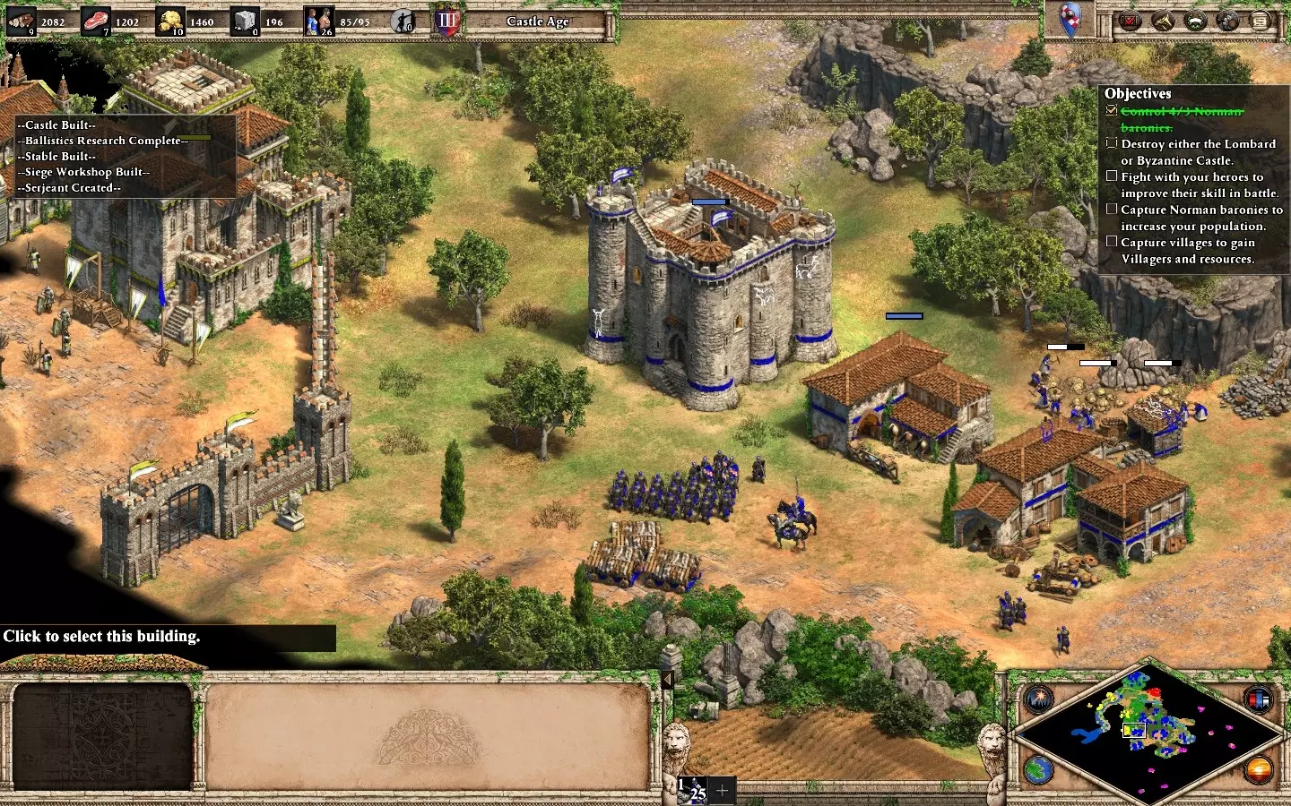 【Basileus】:在“统治权”中达到100点正统性。 这个成就获取方式直接明了,因为你有多种途径获取点数,且资源丰富。在保卫盟友的同时,你会接到多个获取“正统性”的任务。部分建筑、科技以及帝国时代需要达到特定正统性数值才能解锁。 建议部署三支军队,并建造城堡和带有治疗升级的前哨站,以防御敌人常发动波次攻击的三个区域。 任务内容包括击杀敌人、修复建筑、派遣村民/牛以及阻止进攻。摧毁塔楼和部落也能获得点数。 无需主动进攻敌人,你就能达到75至90点正统性。一旦达到100点,即可解锁该成就。