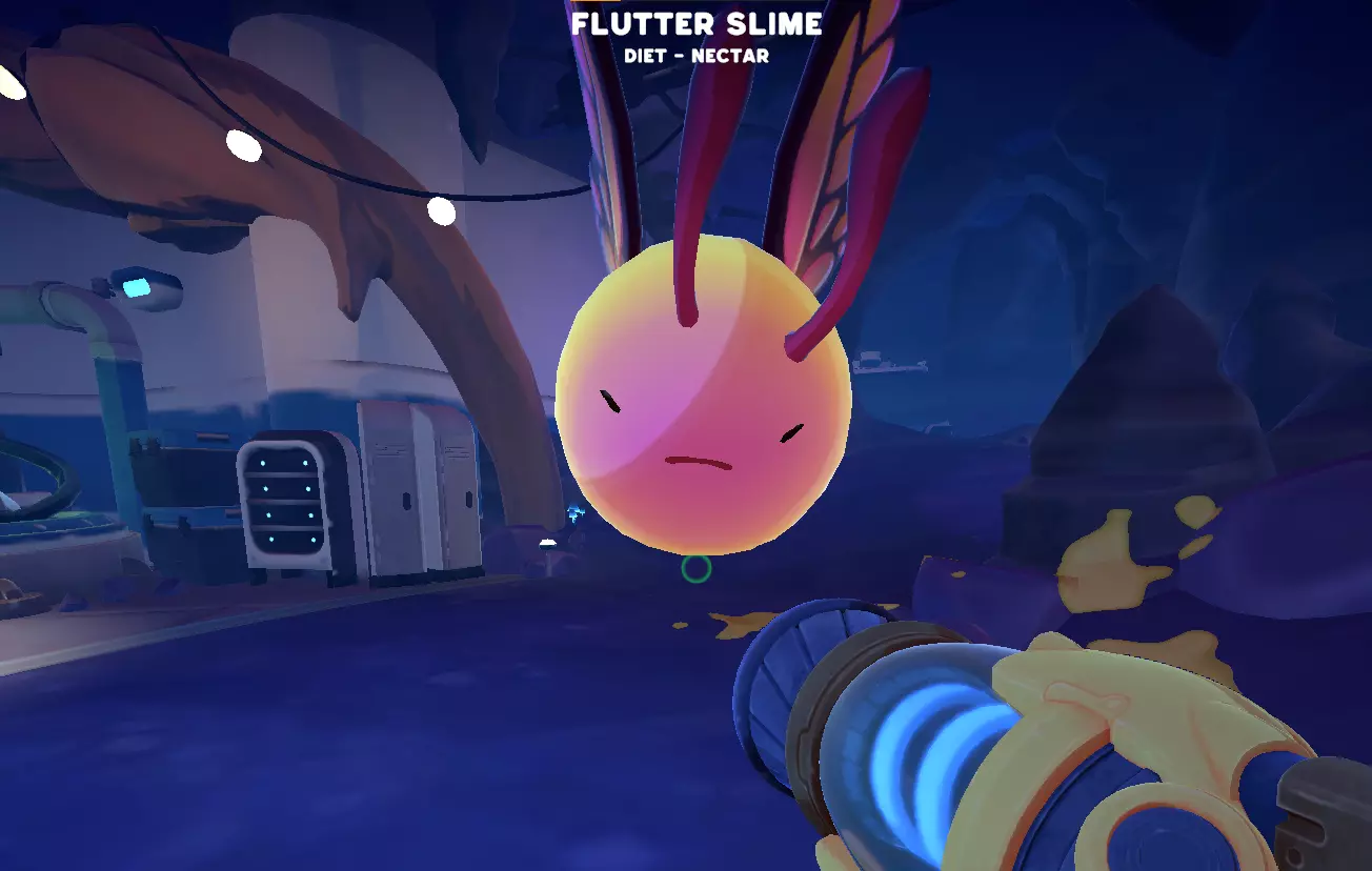 当你将 Flutter Slimes( Flutter 史莱姆)扔出去时,你的史莱姆们会有这样的反应。你可能会问“那我该怎么摆脱它们呢?”还是有办法的,但会很危险。首先,你需要收集各种不同的 plorts(晶球),如果你已经在养殖多种史莱姆,这应该很容易。其次,你需要在牧场外单独藏一只史莱姆,然后向它发射所有不同的晶球,这样应该会生成一只 Tarr Slime(焦油史莱姆)(如果没有生成焦油史莱姆,请检查你的设置并将其开启)。接下来,你要在不让任何史莱姆看到的情况下,把它引到你的牧场,如果成功,焦油史莱姆会开始吃掉所有的 Flutter 史莱姆,但可能会有一些其他史莱姆伤亡。终于,在等待一天左右后,你可以回到自己的牧场并击退焦油怪。这会向你剩下的史莱姆展示你能成为它们的救世主,彰显你作为领袖的力量,而 Flutter Slimes 应该会被焦油怪处理掉。如果在你对付焦油怪时仍有一些 Flutter Slimes 残留,只需不小心将它们和焦油怪一起扔进史莱姆海即可。举个例子: