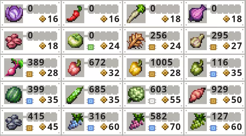 作物上的芯片是什么样子的? 在作物界面中,所有已安装芯片的作物,其作物图像左下角会显示一个符号,符号颜色与芯片稀有度相对应。