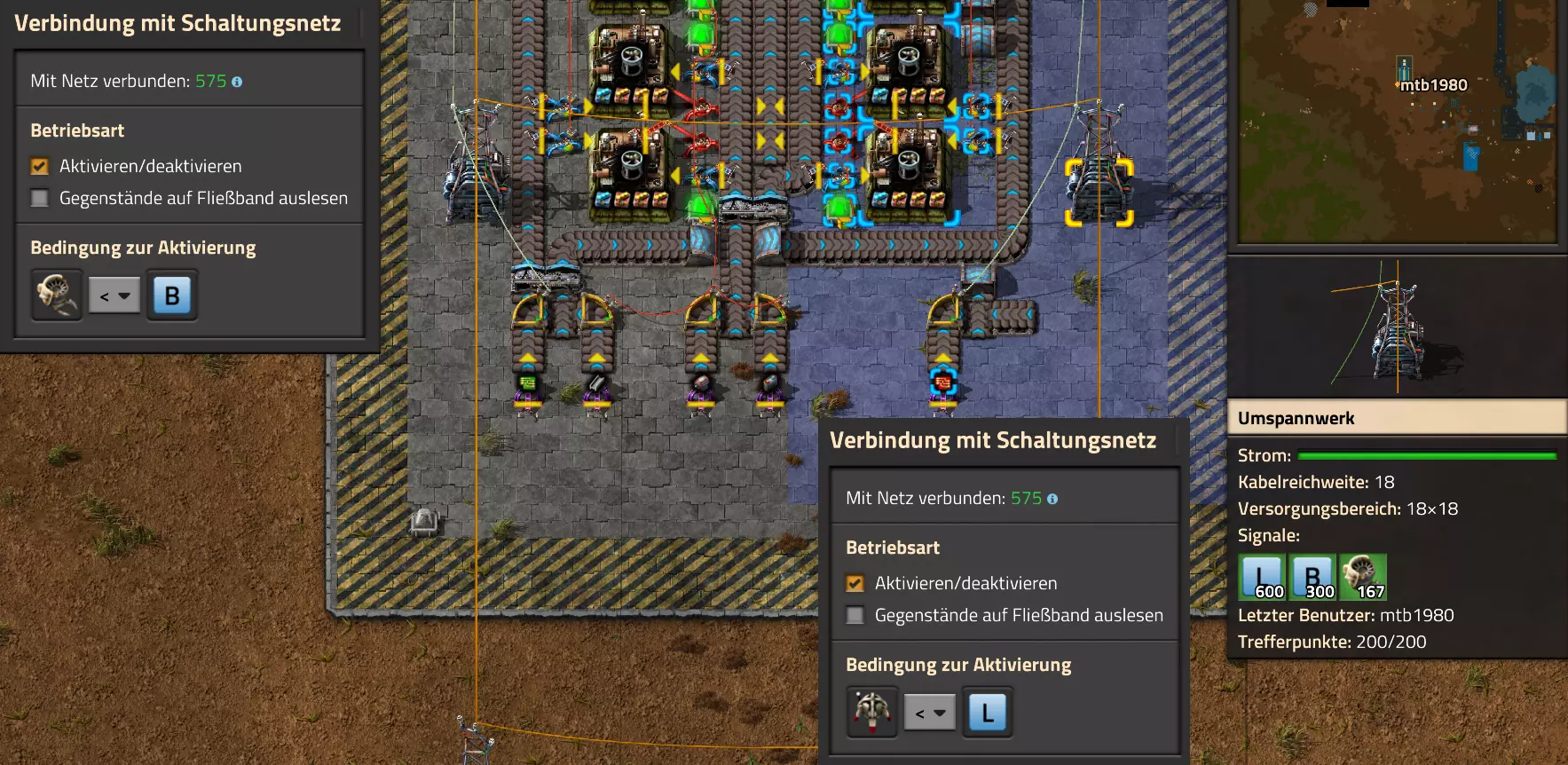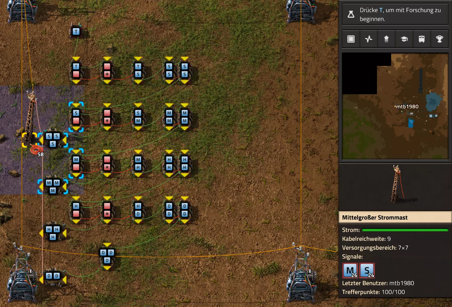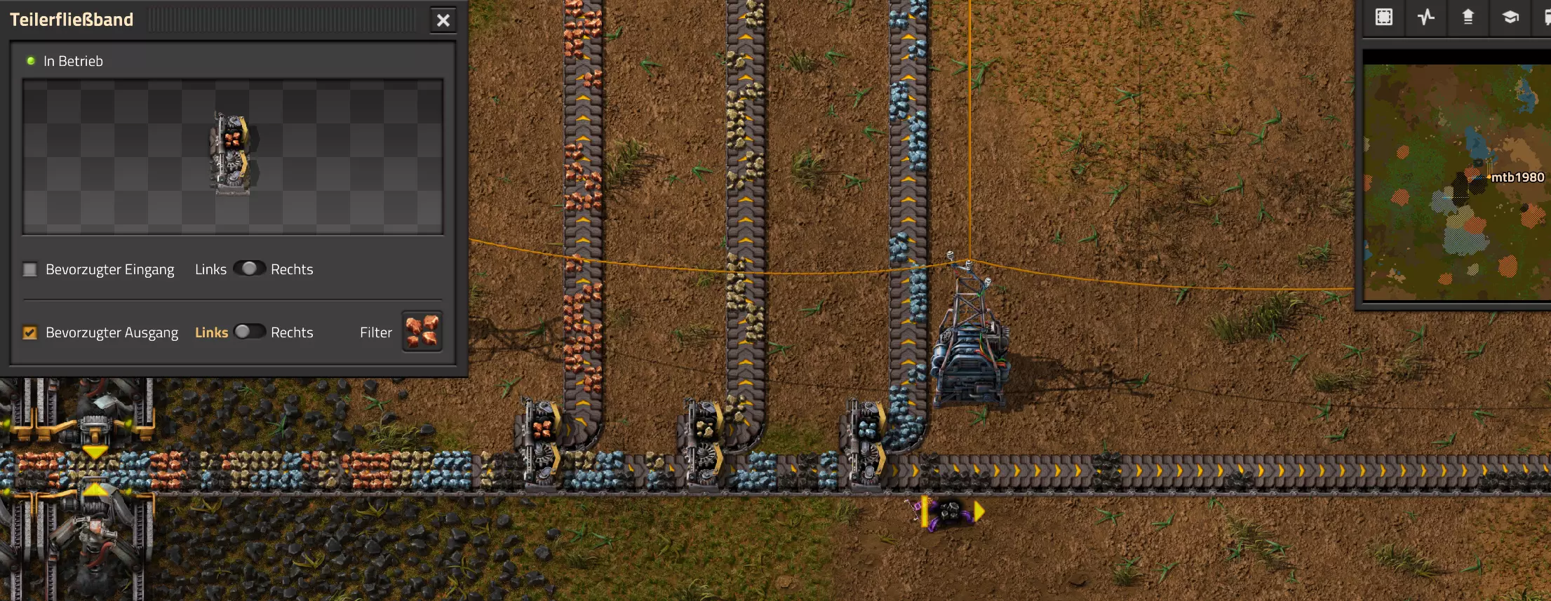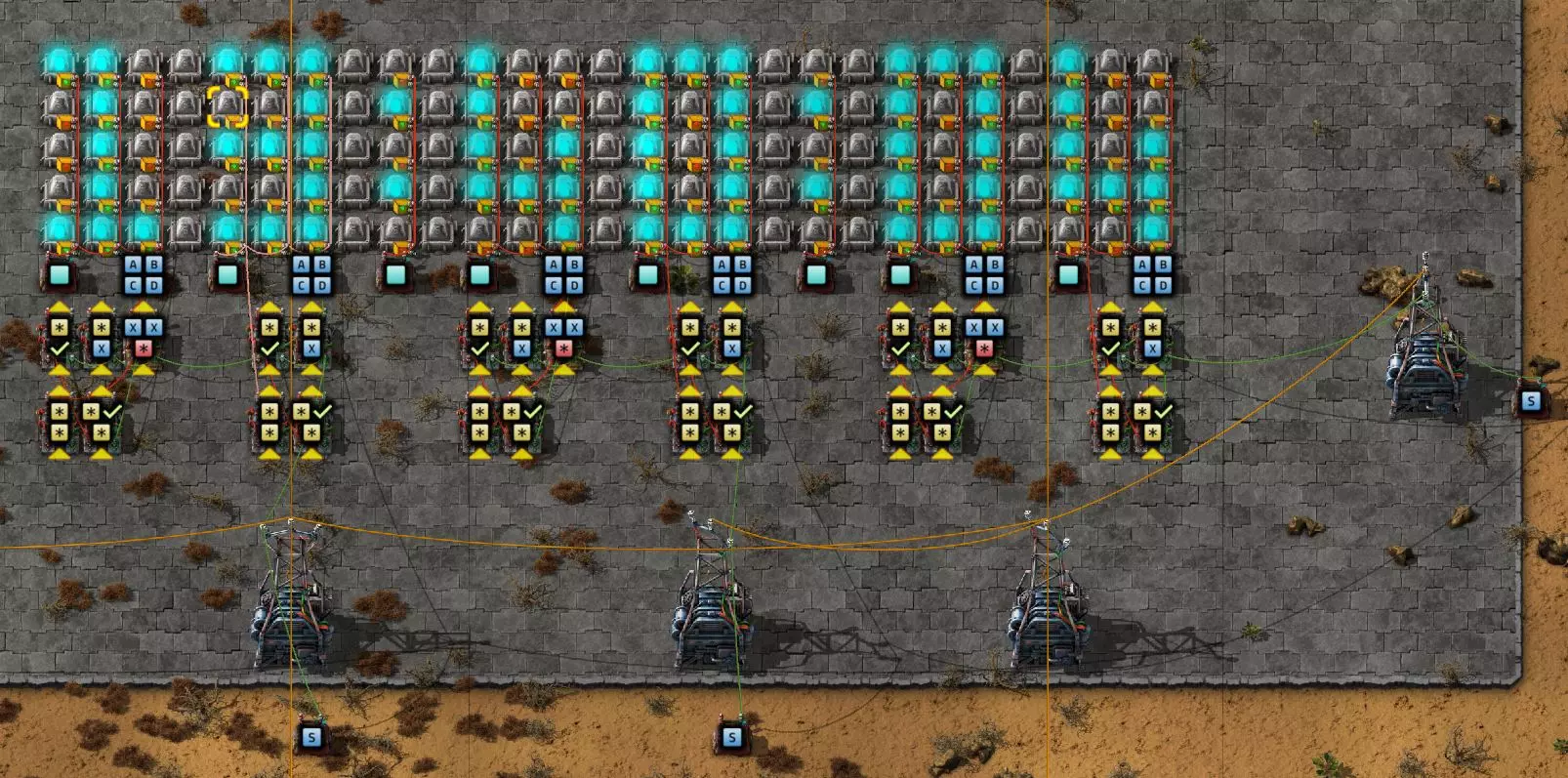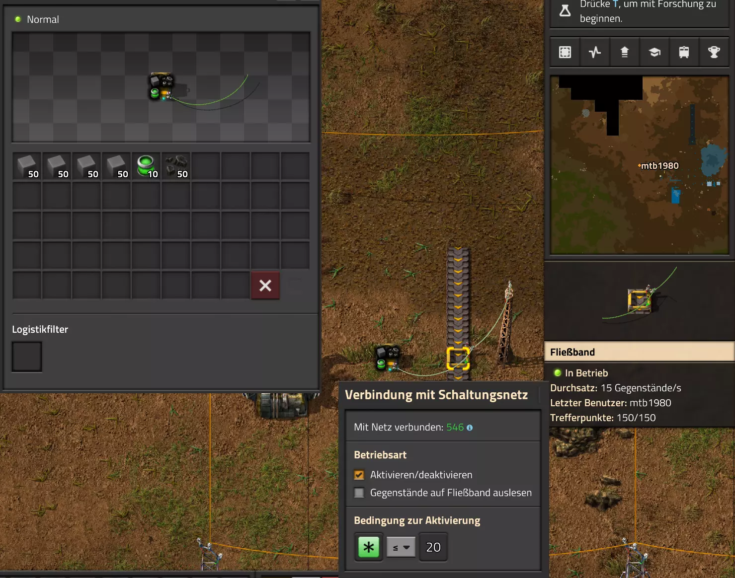 Nachtrag zur Blaupause: Ich hatte mich schon gefreut, dass der Code der Blaupause hier reingepasst hätte. Wenn der unsinnige Steam-Schimpfwortfilter in den Guides nicht mal wieder zugeschlagen hätte. Einige Passagen wurden mit Herzchen ersetzt -.- Daher auch hier wieder der Link zu einem Google-Doc: https://docs.google.com/document/d/1kGbdtH0igx5T_QMFc8MOjfhNyeQ3IJ4LIqh8s_tC6vk/edit?usp=sharing Video: Display-Schaltungen Video: Angepasste Display-Schaltung für Spielzeitanzeige Ich habe das Netz weiter nach Ideen durchforstet und stieß auf ein Video, bei dem es um die Anzeige der eigentlichen Spielzeit ging. Daher hab ich das kurzerhand übernommen, mein Video findest Du hier: In meinem Video verwende ich eine von mir veröffentlichte Tabelle, diese kannst Du hier herunterladen: https://1drv.ms/x/s!AoXhJ5_uZEt1j5VJFk91u9ZqoSAuEg?e=Tzx3tL Das Originalvideo war von Azorae mit dem Titel "Factorio - How to make a Digital Display and Game Clock", hier das Originalvideo: Guide-Playlist PlaylistBeachte bitte folgendes: Playlists werden von Steam nicht korrekt im Steam-Browser übertragen (beziehungsweise auf der Steam-Website nicht korrekt abgespielt): es wird immer nur das erste Video abgespielt. Öffne daher die Playlist in einem richtigen Browser nach Wahl. Die komplette YouTube-Playlist findest Du hier: https://www.youtube.com/watch?v=M8p5x1Z5Gdo&list=PLHcncrCCN2W5VAeaeb2bESmjmVw0klAli Einzel-Video-AufstellungFür die reinen Steam-User hier nochmal alle Einzelvideos aufgereiht; soweit ich das mitbekommen hab, kann Steam keine Playlists abspielen: (Update 2024: Änderungen seit meiner Basisversion des Guides) (Zusatz: Erz- und Ölfeld-Alarme wenn leer) (#6) (#8) (#12) Projekte: (Zusatzvideo zu Bahnübergänge) (Zusatzvideo zu Tankbefüllungen) (Ölverarbeitung) (Forschungsanlage 2 v3) (Forschungsanlage 3 v1) (Robo-Fertigung) Zeitschaltungs-Videos: (Einleitung zu Ticks) (Zeitschaltung bauen: Tage, Stunden, Minuten, Sekunden) (Berechnung und Hilfe zur Bitmaske, Vorbereitung für Displayschaltung) Dazugehörige Microsoft Excel Arbeitsmappe: https://1drv.ms/x/s!AoXhJ5_uZEt1j5VEGjgfHBEaet2vJw (Video zur Displayschaltung und verschiedene Anwendungen) (Displayschaltung mit echter Spielzeitanzeige) Versionsänderungen 11/2024:Neue Inhalte: Abschnitt für Forschungsanlage 3 (v1) eingebaut, speziell an "Space Age" DLC angepasst Video zu Forschungsanlage 3 (v1) eingebaut Video zu neuen Schaltungselementen eingebaut, welche seit der Guide-Erstellung dazugekommen sind Inhalte angepasst: Information bezüglich der neuen Funktionen seit der Guide-Erstellung bei verschiedenen, bisher bestehenden Kombinatoren eingebaut 06/2022:Neue Inhalte: Video zu angepassten Displays angefügt - die echte Spielzeit anzeigen Zusatzvideo zu Bahnübergängen eingebaut Neuen Abschnitt für Erzabbau-Infos eingebaut, enthält nur Video und keine schriftliche Anleitung. Grüße gehen raus an @Sneak0r! Video zum Projekt "Displayschaltung" eingefügt: Displays Video von SeeNo zu "Forschung 1" eingefügt (seine Idee!) Videos zum Projekt "Displayschaltung" eingefügt: Referenzschaltung (inkl. Support-Material) Video "Zeitzähler-Schaltung" eingefügt Video "Einleitung Ticks" eingefügt Video zum Projekt "Robo-Fertigung" eingefügt Video zum Projekt "Forschung 2 (v3)" eingefügt Video zum Projekt "Ölverarbeitung" eingefügt Neuer Abschnitt: "Da fehlt noch was?" eingebaut, direkt über den Kommentaren Inhalte angepasst: Hinweis auf SeeNo's Video zur Forschung 1 im Einleitungstext zum Abschnitt eingefügt Versionsänderung überarbeitet: Anzeige auf Monatsblöcke umgestellt 05/2022:Neue Inhalte: Video über dem Ölverarbeitungsbeispiel eingefügt, warum ich bei Tanks immer den Durchschnitt rechne 08/2021:Neue Inhalte: Video zur Füllstandsanzeige Spezial eingebaut (Beispiel Lampen Füllstandsanzeige) Video zur FlipFlop-/RS-/SR-Schaltung eingebaut (Auto-Abschaltung) Inhalte angepasst: Bei den YouTube-Videos die Kommentar-Funktion aktiviert 07/2021:Neue Inhalte: Video zu Lautsprecher und Alarmen eingebautVideo zur Einstellung von Filtergreifarmen eingebaut Video zu den Basis-Kombinatoren erstellt Video zu den Stern-Variablen erstellt Video zu Greifarm-Einstellungen und Lampen erstellt Video-Playlist für alle Guide-Videos eingesetzt Neuen Bereich zu Ansichtsoptionen in Factorio nach dem vergleichenden Kombinator eingefügt Video zur Einleitung bereitgestellt Neue Beispiele eingefügt: Automatisierte, teilintelligente Roboter-Fertigung eingebaut Neue Beispiele eingefügt: Display-Stückzahl-Anzeige (groß) eingebaut Timer-Anzeige hh:mm:ss (kompakt) eingebaut Bahnübergänge sichern Abschnitt über Detailinfo zu den Gruppenvariablen hinzugefügtVorwort ergänzt: Neuen Abschnitt angelegt mit Hinweis, dass nicht jedes Problem mit einer Schaltung optimal gelöst werden sollte ;) Beispiele für verschiedene Forschungskomplexe eingebaut SR-Latch (Flipflop) Schaltung hinzugefügt -> Anlagenteile abschalten Inhalte angepasst: Einige Rechtschreib- und Satzfehler behoben Einleitung ergänzt Playlist-Abschnitt überarbeitet, im Steam-Guide lässt sich keine Playlist direkt abspielen. Daher zusätzlich alle bisherigen Einzelvideos zusätzlich einzeln nochmal angeführt Hinweis zu Bildern in der Einleitung hinzugefügt (Bild-Collagen) Überschriften der Beispiele umgeschrieben und gekürzt für bessere Lesbarkeit in der Seitenspalte Mehrere Rechtschreibfehler korrigiert, Einleitungsabsatz mit Splitter-Beispiel überarbeitet Einige Materialwortfehler ersetzt (habe ab und an Rohöl statt Schweröl geschrieben) Übersicht bei Versionsänderungen neu aufgebaut 06/2021:Neue Inhalte: Abschnitt für Zeitschaltung eingebaut Filtereinstellung eingebaut Beispielprojekt Kisten gleichmäßig befüllen eingebaut Abschnitt für verbesserte Ölversorgung fertiggestellt Lampen-Schaltungen fertiggestellt Beleuchtungsskala für Füllstände (Projektbeispiele) eingebaut Beispiele für Hinweismitteilungen eingebaut Miditorio-Abschnitt (Musik in Factorio) eingesetzt G