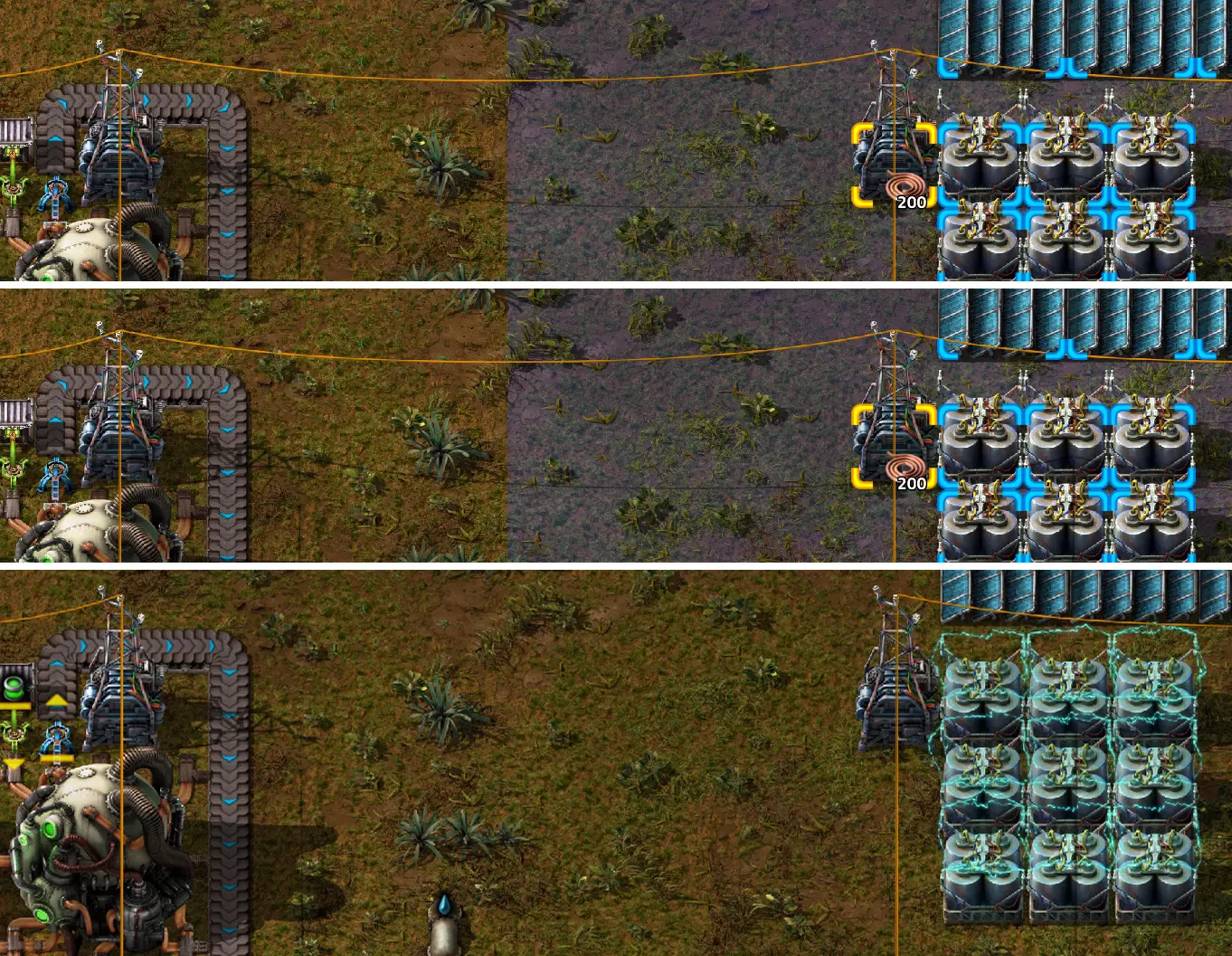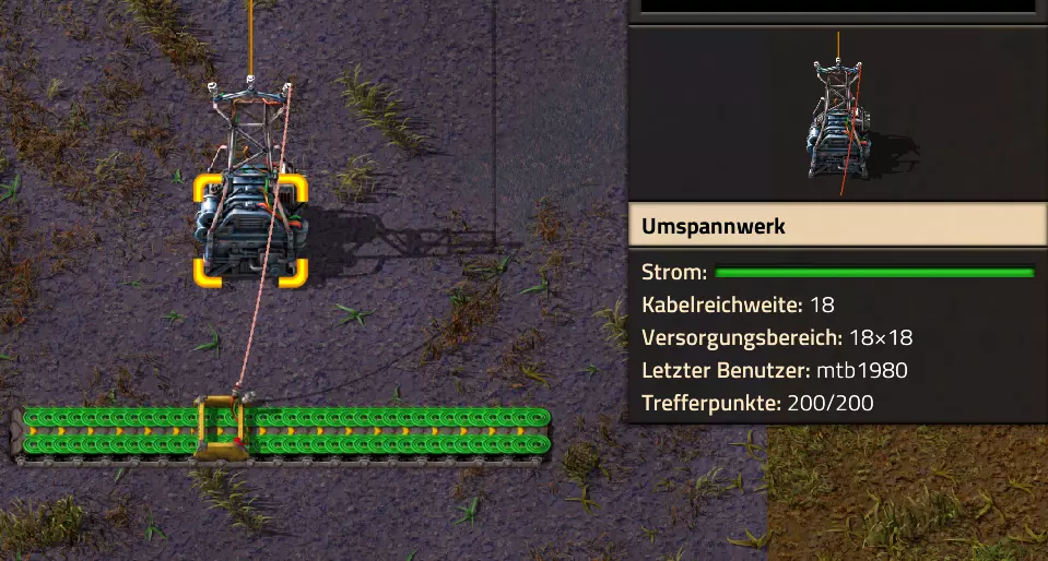 我在这里再次从风格上进行了精简,突出了重要元素。目前,反应堆旁的电线杆与蓄电池旁的电线杆是相连的。我通过在这两根电线杆之间重新拉一根铜电缆来断开连接。这样一来,这两个元件之间就不再有其他连接了。