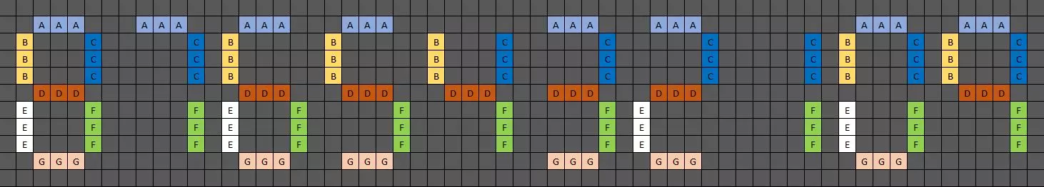 这里的每个数字都可以分为七个不同的部分。我将它们命名为A到G。