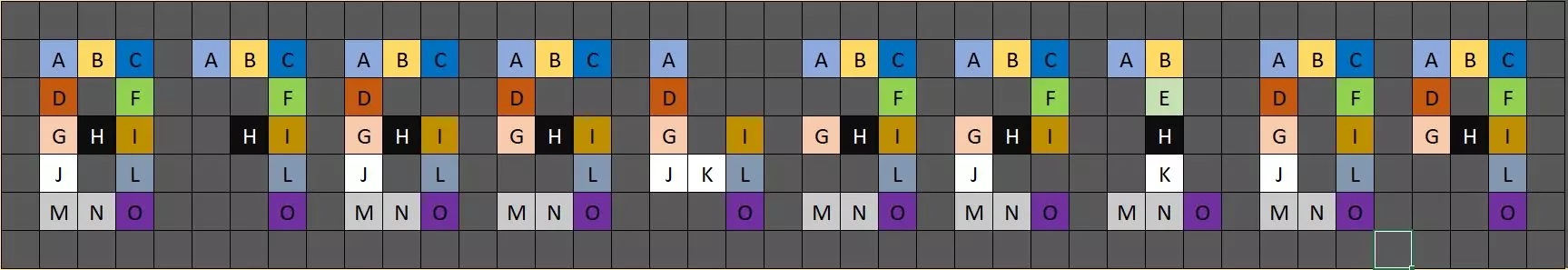 设置小时序列 我们重复该游戏,复制分钟序列并将其放在下方。我们还将使用的变量从M更改为H,从H更改为D(代表天)。我们也直接拔掉电缆: