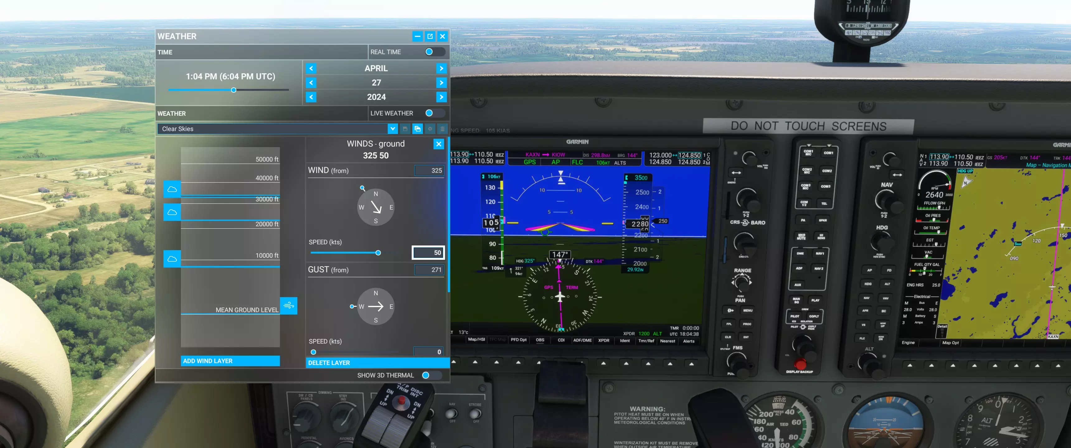 不知为何,风速几乎是显示数值的两倍。当我将风速设置为50节时,飞机上显示的尾风约为90节,你可以在附带的截图中看到。