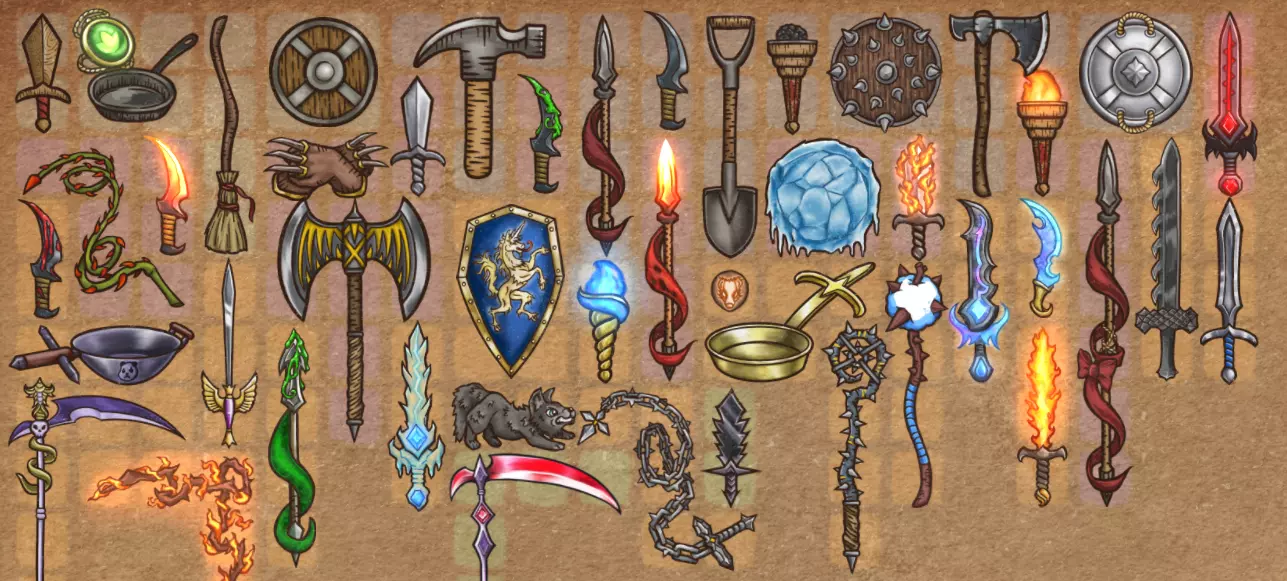 增益效果 格挡(防御):吸收1点伤害。 再生:每2秒恢复1点生命值。 幸运:提高5%武器命中率。 尖刺:造成近战武器伤害值100%以内的1点伤害。需要注意的是,尖刺造成的伤害不会超过受到的伤害,且不会对宠物攻击、远程武器射击或中毒伤害进行反击,这大幅降低了其实用性。吸血:根据近战武器造成的伤害,恢复1点生命值,最高可恢复至100%。此效果与尖刺类似,仅限近战武器使用。 魔力:魔法物品使用的资源,魔力本身无效果,需要消耗使用。 炽热:所有物品的激活速度提升2%。这个增益效果非常有用,但也可能对您造成伤害,因为它会加快武器速度,这可能导致耐力迅速耗尽。 强化效果:武器造成+1伤害。 减益效果:中毒 - 每2秒造成1点伤害(这实际上与生命恢复效果相反)。失明 - 降低5%武器命中率(与幸运效果相反) 寒冷 - 所有物品激活速度降低2%(与灼热效果相反) 增益效果实质上直接影响战斗结果,因为通常拥有更多增益效果的一方会获胜。游戏中有多种施加增益效果的方式,其中法师专长于增益效果,而收割者专长于减益效果。同时需要注意的是,在物品中存在一些可以移除角色身上效果、阻止敌人移除自身减益效果,甚至窃取敌人增益效果的物品。 物品类型 游戏中有许多不同的物品,它们可以大致分为几种不同的类型,在这部分我将具体介绍这些类型。 武器