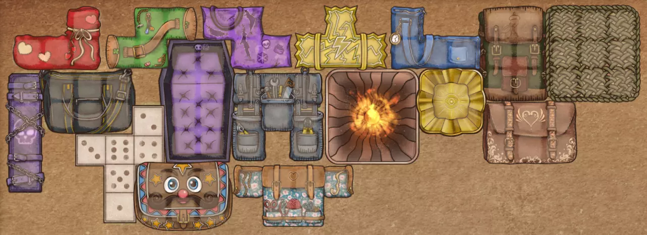 无论如何,刚开始游戏时并不一定要了解它们,随着时间推移,你自己会弄明白它们的作用和用途。 游戏的另一个重要方面是背包(毕竟是【背包大战】)。我们会把自己的物品存放在背包里,物品的摆放方式将决定你能放入多少物品,这也意味着会影响你的实力,所以尽量利用每一个格子。所有物品和背包都可以移动和翻转,当你需要空间时,别忘了这一点。 游戏中有多种不同形状和尺寸的背包,它们都具有独特的属性,但总体来说,大多数背包对游戏的影响不大,所以你不必为此过多操心。