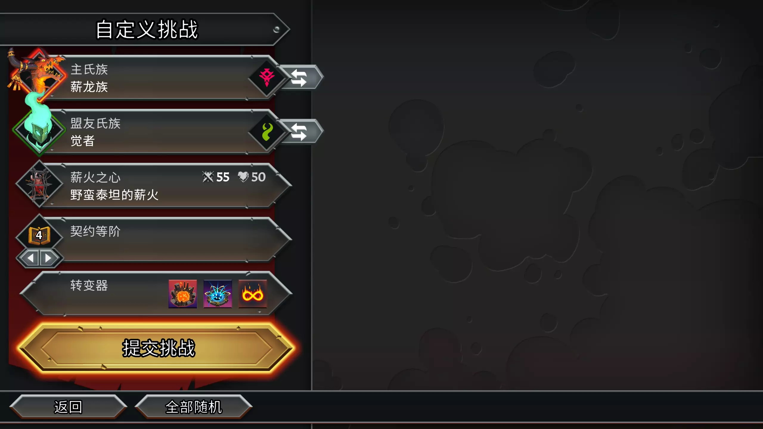 回归基本不升级卡牌赢得一轮游戏。 应该是三个自肃挑战中最简单的 选择转变器:剑拔弩张(迅捷)、祝福印记(神器)、重击(多重+1)