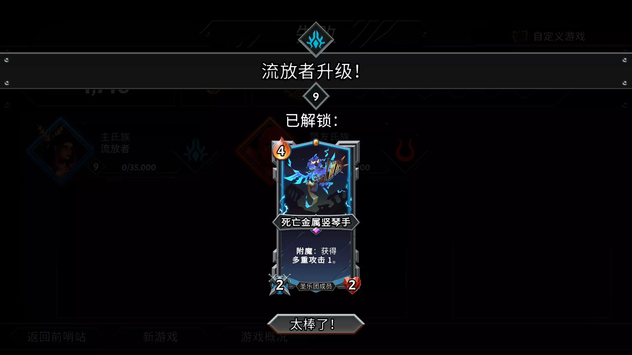 其中死亡金属竖琴手由流放者9级解锁: