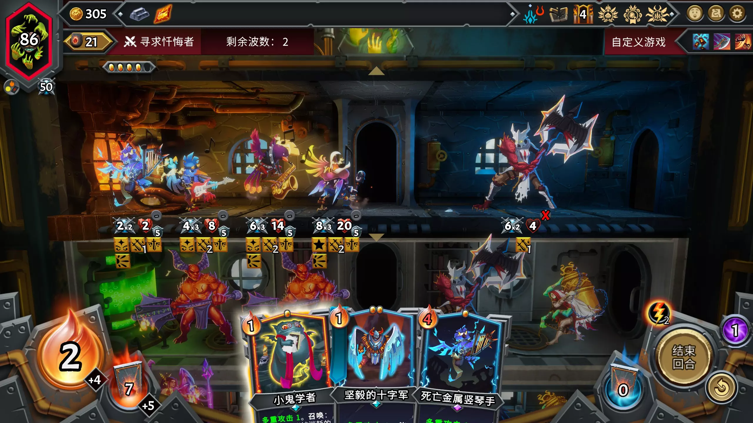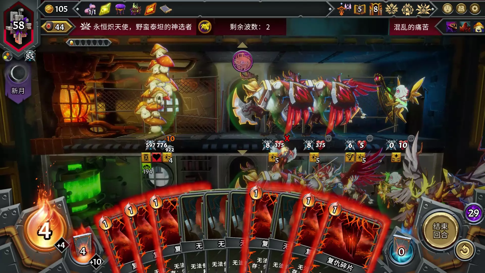 由于竖琴手需要4点费用,打完第3层首领后选择增加费用即可。