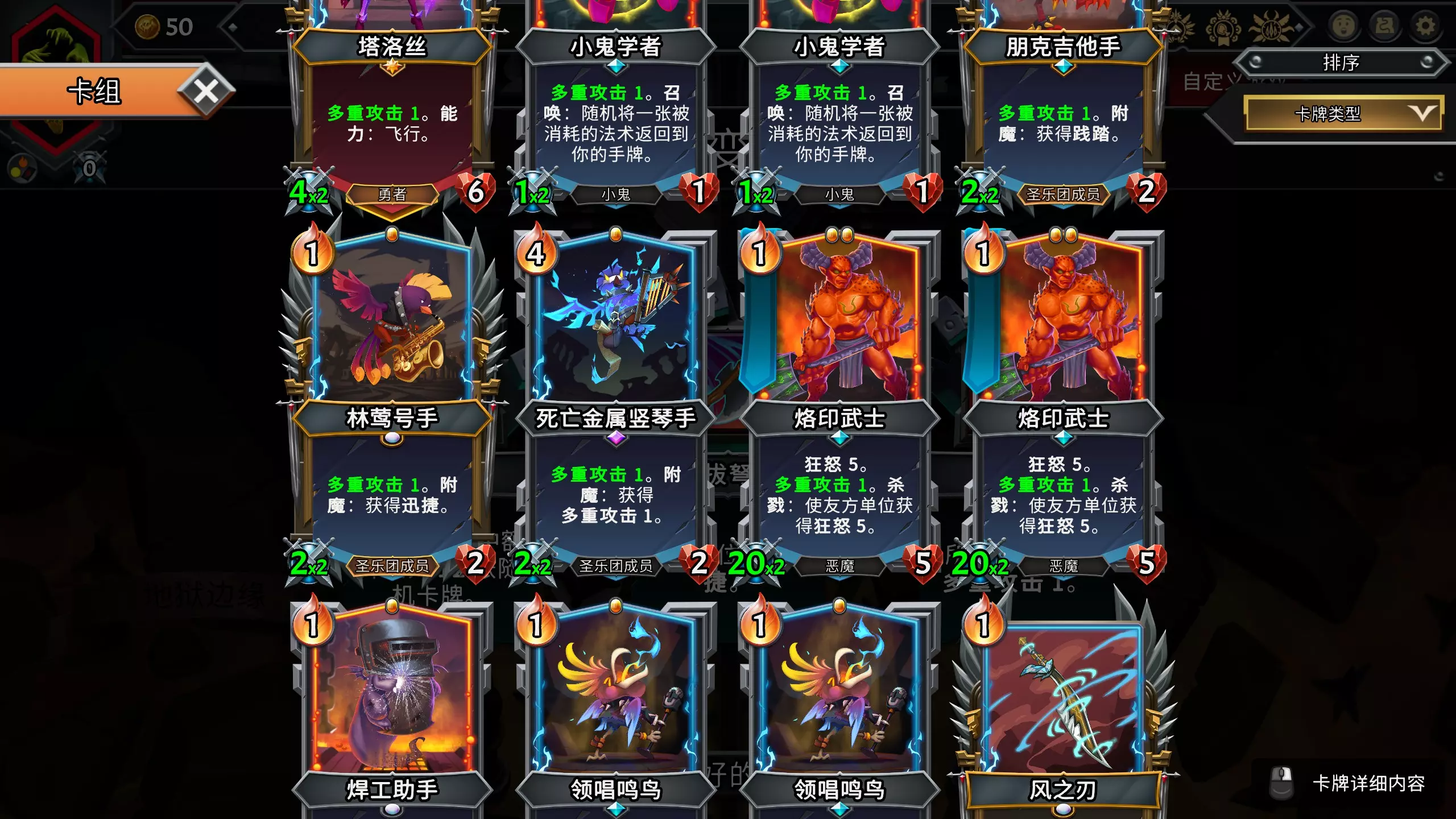 然后做出1费地狱火并复制,全程使用地狱火即可