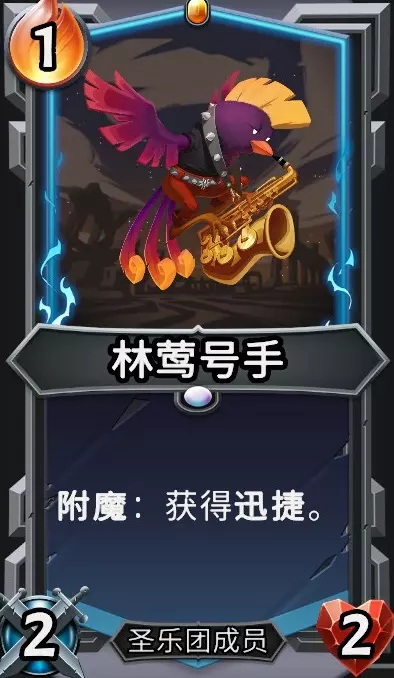 重组乐队召唤到同一楼层:领唱鸣鸟、死亡金属竖琴手、朋克吉他手以及林莺号手。这四张生物都属于流放者阵营。