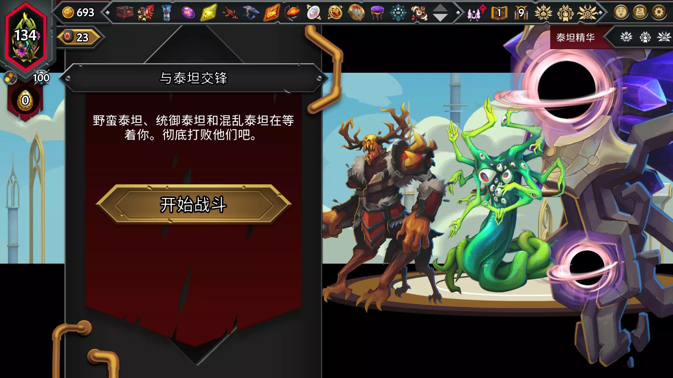 泰坦杀手击败泰坦。 解锁泰坦战后,每轮游戏的3个首领战都会新增泰坦试炼选项,勾选后首领能力增强,击败后可以获得一个泰坦精华。