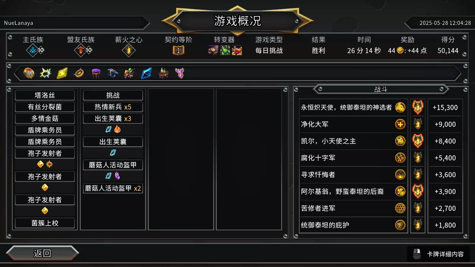 蜂巢思维在启用所有地下菌团契约的情况下赢得一次游戏。