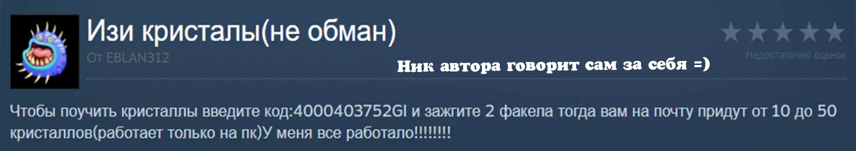 这将是一个耻辱柱。刚说完不需要轻信这类东西,就已经出现了“诈骗天才”。提醒一下,该代码只能提供5个水晶,不多也不少。