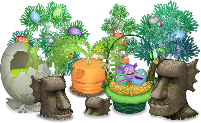 特殊装饰与水之岛的变化。商店中提供仅在活动期间可购买的特殊装饰。此外,水之岛也进行了外观更新,岩石、树木等元素均采用了“复活节”风格设计。
