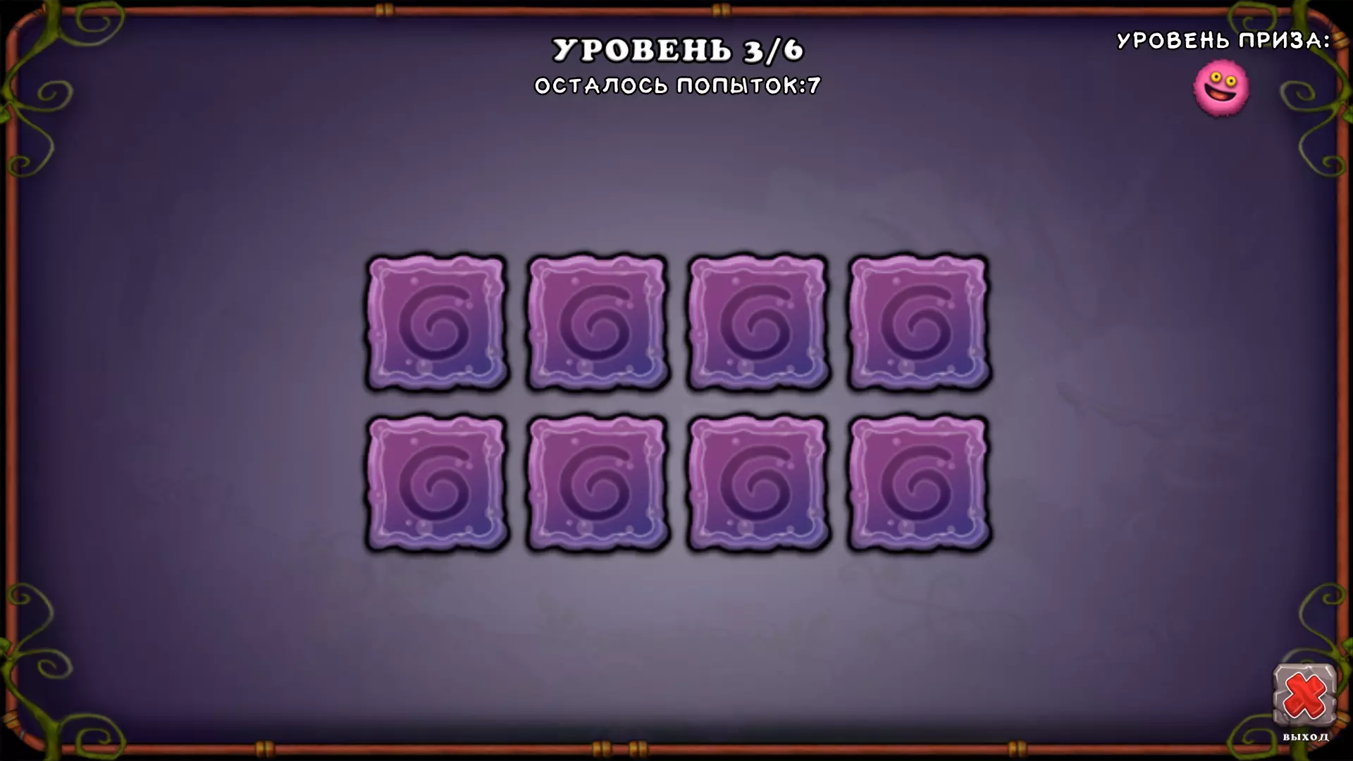 现在可以开始玩“记忆”游戏了。 前2个关卡只需正常通过,无需在程序中进行任何操作。 而从第3关开始,就可以在程序中进行一些操作了。 具体需要做什么: 查看第三关的尝试次数,该次数为8次。