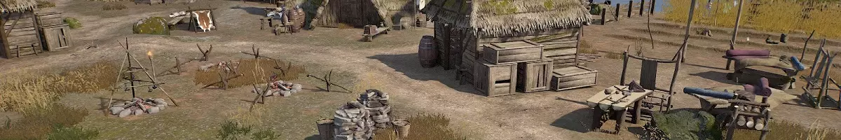 1. 在道路附近建造快速旅行路标,每个定居点以及有食物和储物设施的中央玩家枢纽都要放置一个。探索时,使用常见材料制作路标(和斧头)。可以大量建造路标以获得最大移动自由,但要注意每个路标需要消耗150声望。在地图上,启用定居点内路标的导航点,以便更轻松地快速旅行,它们也会显示在小地图上。将路标切换到新的【个人】前哨站,以防止守卫“保护”它们。也可以使用此前哨站来阻止定居者访问个人储物箱。对没有储物设施的前哨站发动的袭击,袭击队伍会在地图上漫无目的地游荡,不会采取任何行动。一个好的基地位置需要具备以下条件:视野良好,有道路可供设置旅行路标,拥有平坦的建造空间(尤其是农场),并且能够方便地前往你进行小规模战斗的区域(后期可以考虑靠近河港)。资源虽然有用,但除了初期阶段外,都可以通过前哨站来补充。 3. 理想的首个临时营地位于Haerndean东南部,河流上方。这里有芦苇、铜矿石和丰富的野生动物。在利用现有材料完成所有可研究内容之前,建议留在这里。 4. 首个长期定居点的理想位置在Padstow东部(湖泊北部)。附近有泥浆、锡矿石、芦苇、大蒜和野生动物。 如果你选择这些位置,可以将首个临时营地改造成铜矿石前哨站,这样你将拥有T1阶段所需的一切资源,以及T2阶段的大部分资源。上图是法恩沃思南部的海滩,风景不错但除此之外并无特别之处。 5. 前哨站选址必须具备重要资源、相对安全且靠近道路以便设置路标。关于前哨站的更多信息如下。 6. 迁移到新定居点是项艰巨的工作,除非你喜欢建造,否则不应掉以轻心。先在目的地建立一个小型前哨站,包括一个物资储存点和几名负责伐木/采集的定居者,然后利用他们的运输能力运送建筑材料。 通过地图从新位置移动建筑。如果有可用的存储空间,定居者可以完成大部分工作,不过这需要时间。从那里逐步扩展。 7. 位于土匪总部和他们的回收目标之间的定居点会自然地“拦截”他们。这既可能有用,也可能带来麻烦,因为守卫不会作为一个有凝聚力的单位作战。我建议待在强盗的路径附近,但不要直接挡在路上。 8. 在被强盗占领的村庄旁建造建筑,然后激怒强盗,会使你的守卫不断与刷新的驻军战斗,从而持续保持强盗的敌意。我建议将定居点建在村庄驻军的攻击范围之外。这样可以避免无法放弃村庄以及无法让强盗重新变得友好的情况,不过如果你已经到了那个地步,被动地收集他们的战利品也是很有趣的! 9. 如果你还没有解锁谷仓,建造储物堆时可以按照比实际需要大10%左右的规模来建,以便日后轻松升级。首先移动旧的储物堆,放置谷仓,复制移动后的储物堆的设置,然后将所有东西移回。虽然麻烦,但谷仓容量增加了150%(达到1000)。 10. 大多数稀有资源并非特定区域才有,不过你可能需要主动寻找它们。使用地图覆盖层可以更轻松地看到资源图标。 部分资源有特定位置:芦苇生长在水边,小麦分布在强盗麦田以及河流以南的部分区域。蔓越莓、泥炭和苔藓生长在西部沼泽周围。南部有大量棉花和铁矿。 12. 不要亲自建造需要锤子的建筑。这速度慢得离谱。为提升美观度:使用装饰物品、大量栅栏、一些战利品、少量厕所、额外的 drying racks(晾晒架)和立式火把(尤其是在营地入口和农场周围)。 道路若以短路段建造并带有平缓曲线,看起来会很棒。 武器架也可以当作工具架使用! 4. 供应链